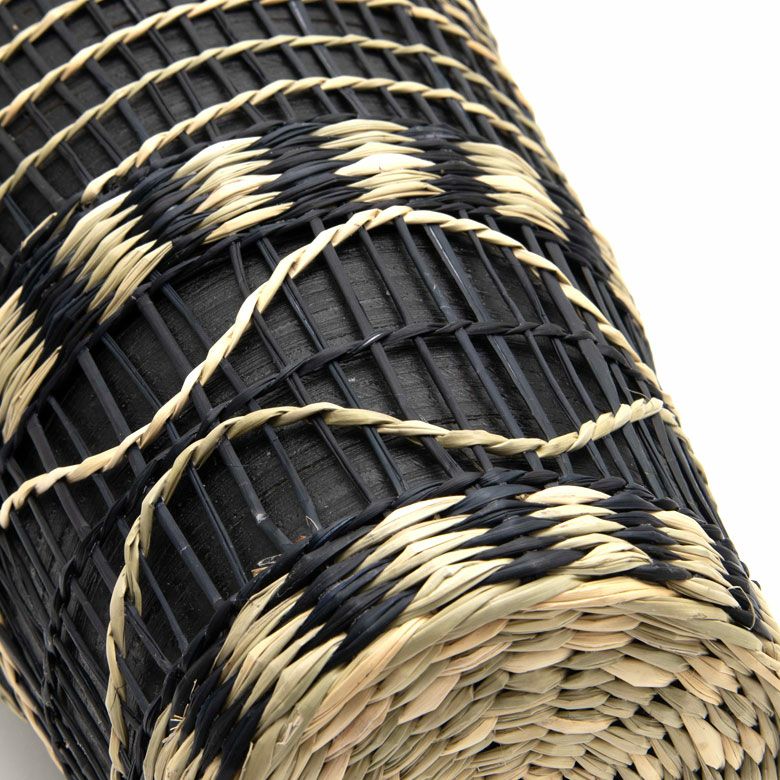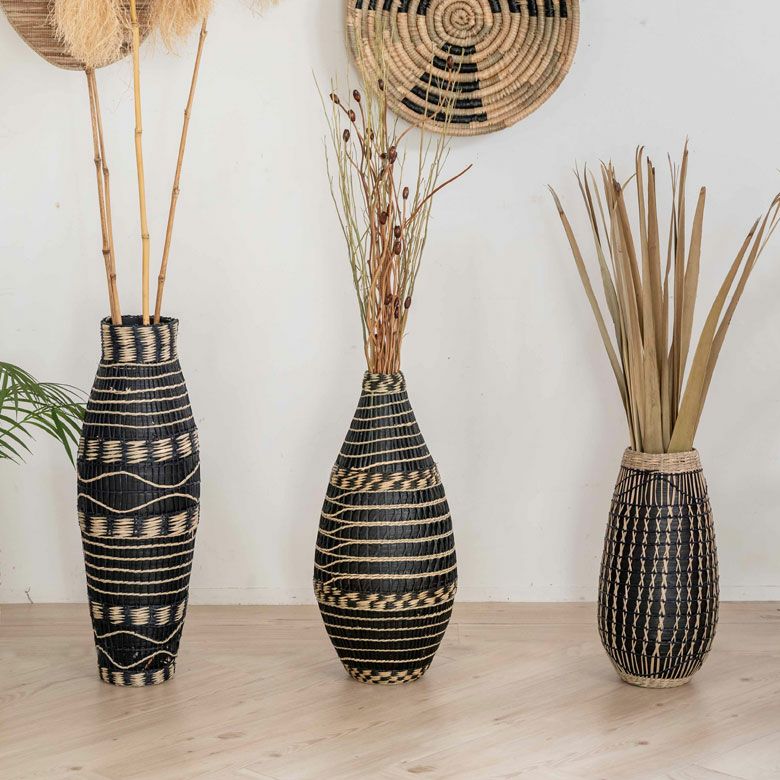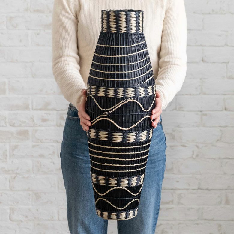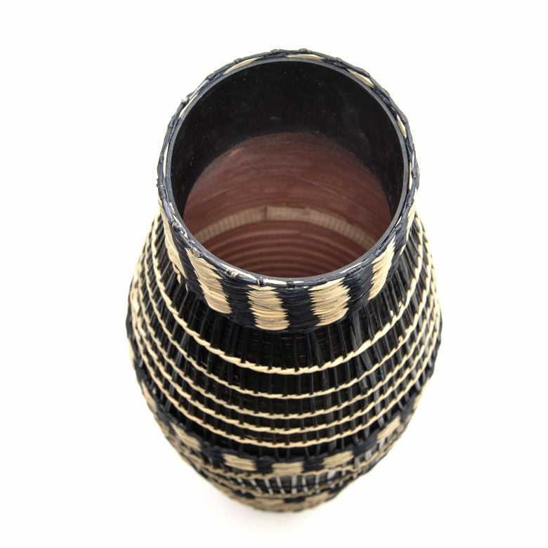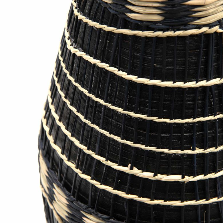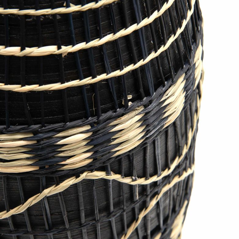 プレスしたバンブーを繊細なシーグラスで編み上げた、ユニークな壺型のフラワーベース。