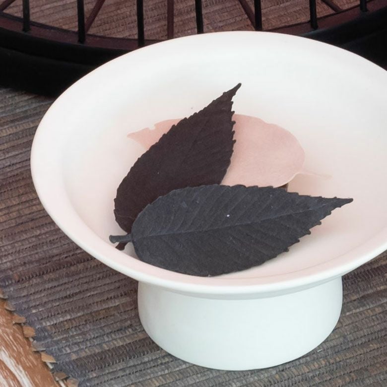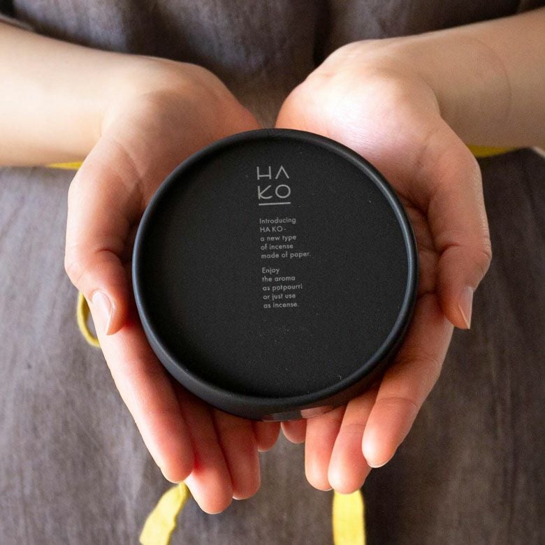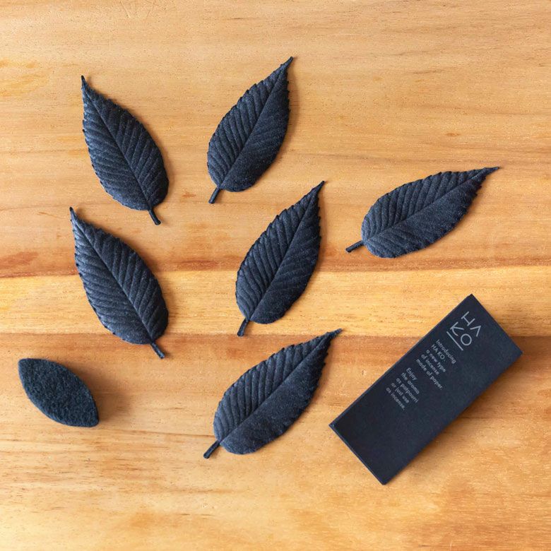 葉っぱをモチーフにした紙のお香。黒い紙でできた丸箱タイプ(Black Relax6枚入り)のセットです。