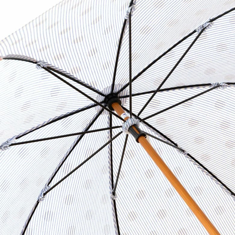 傘の中棒はしっかりとした天然木を使用。留め具、石突き部分も竹を使用した細かなこだわり。
