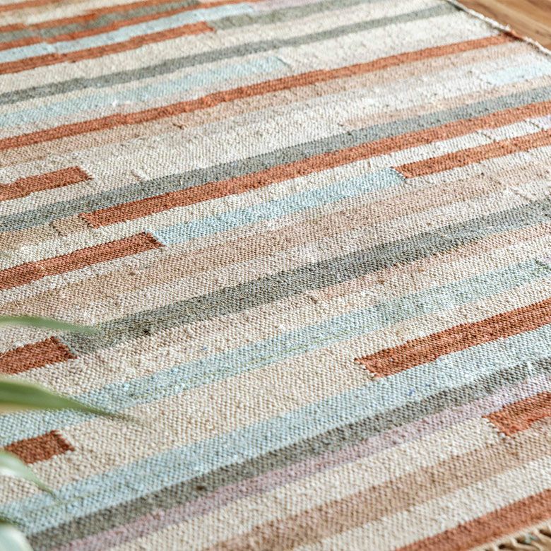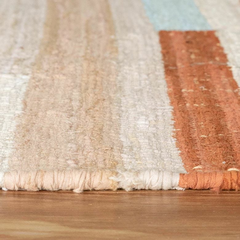 派手な色使いの多いキリムラグですが、こちらはブラウン・ベージュ・ライトブルーなどの優しい色使いが
