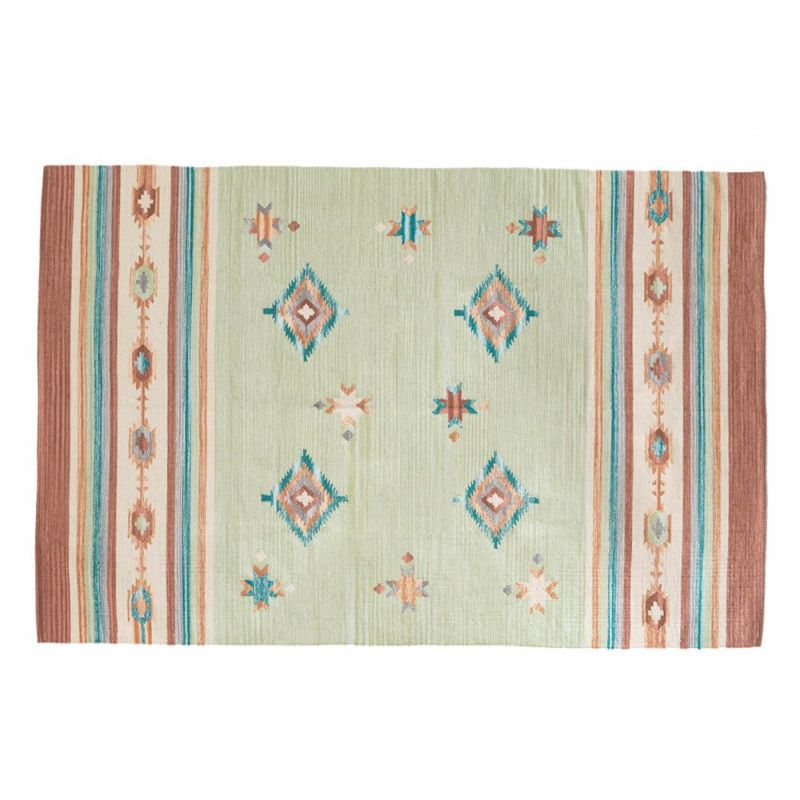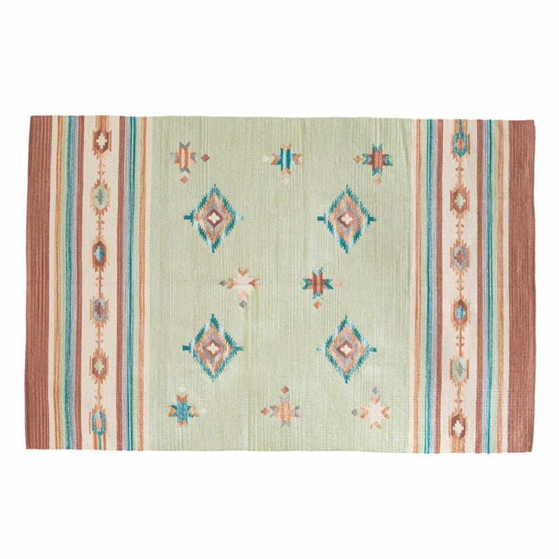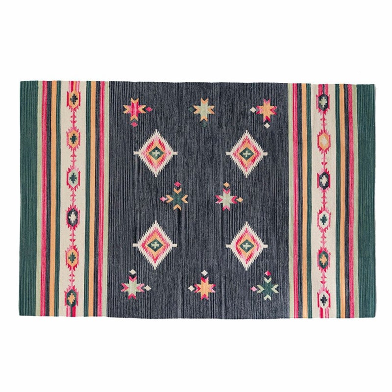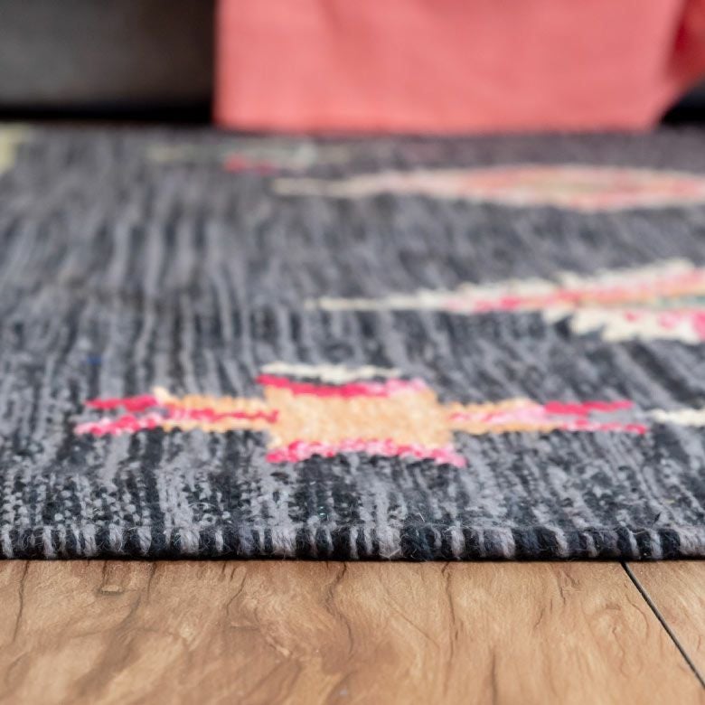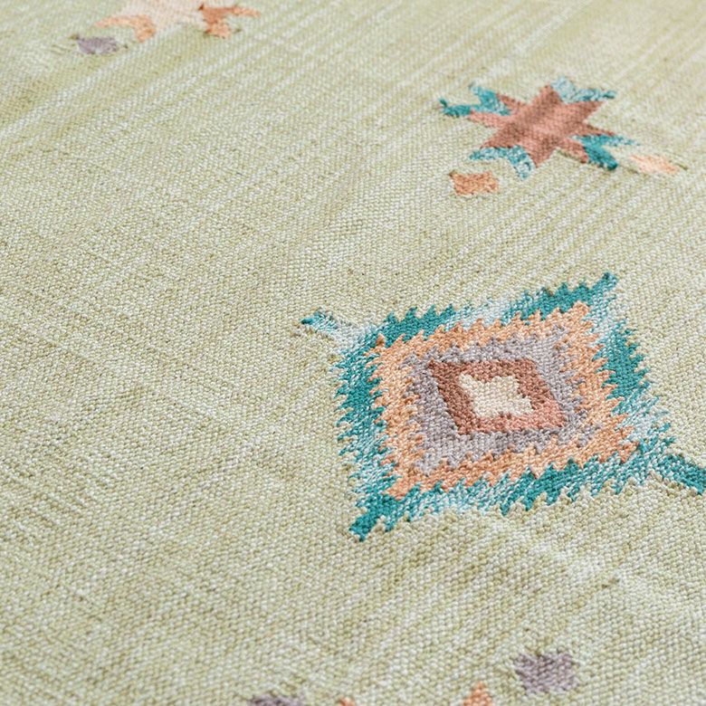 コットン100%のオールシーズン使いやすく、目を惹く色味がお部屋のアクセントになるキリムラグ。