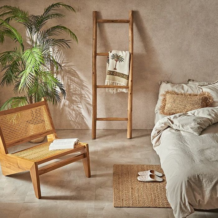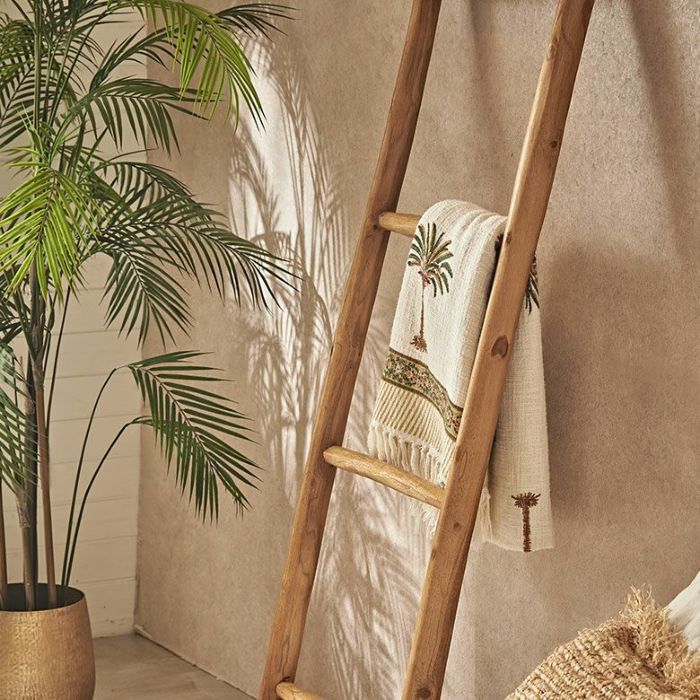 バリ島のヴィラやお店で見かけるはしご型のハンガー。チークそのもののうねりや歪みを活かした素朴でシンプルなデザインです。4段あるはしごの使い方は自由自在。タオルを掛けたり洋服を掛けたり見せる収納としても活躍してくれます。壁に立てかけるタイプなので省スペースで場所もとりません。