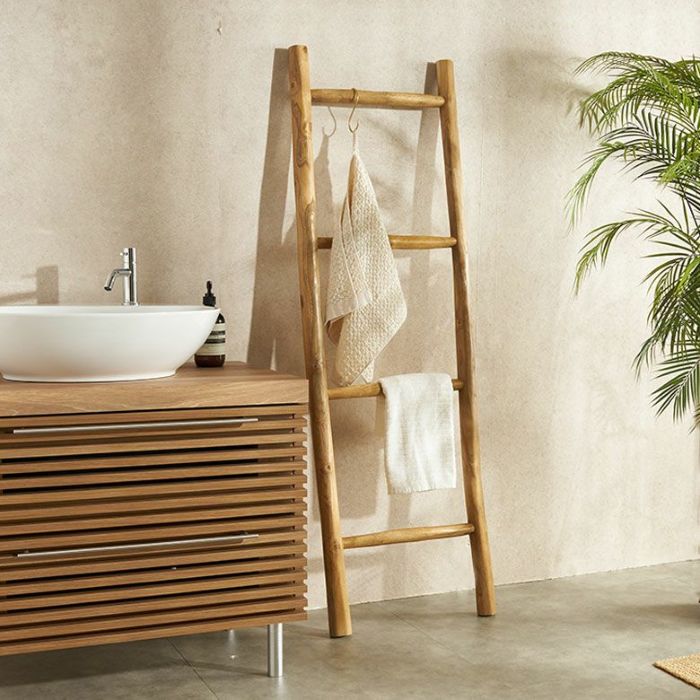 チークウッドのはしご型タオルハンガー