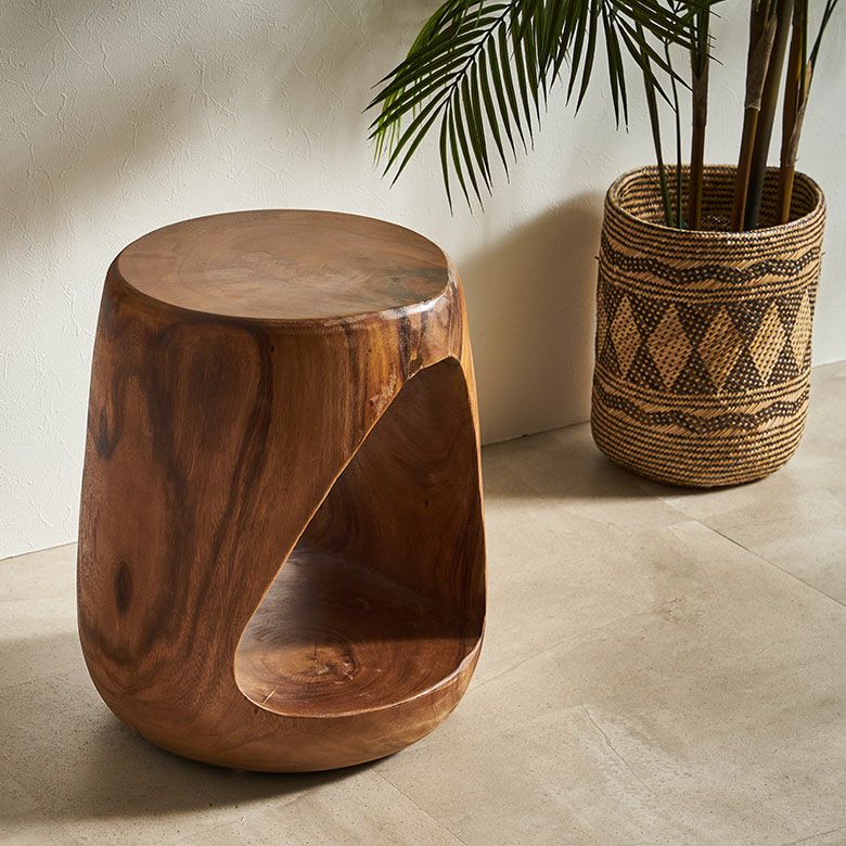 モンキーポッドの無垢材を使用した木彫りの丸太スツール