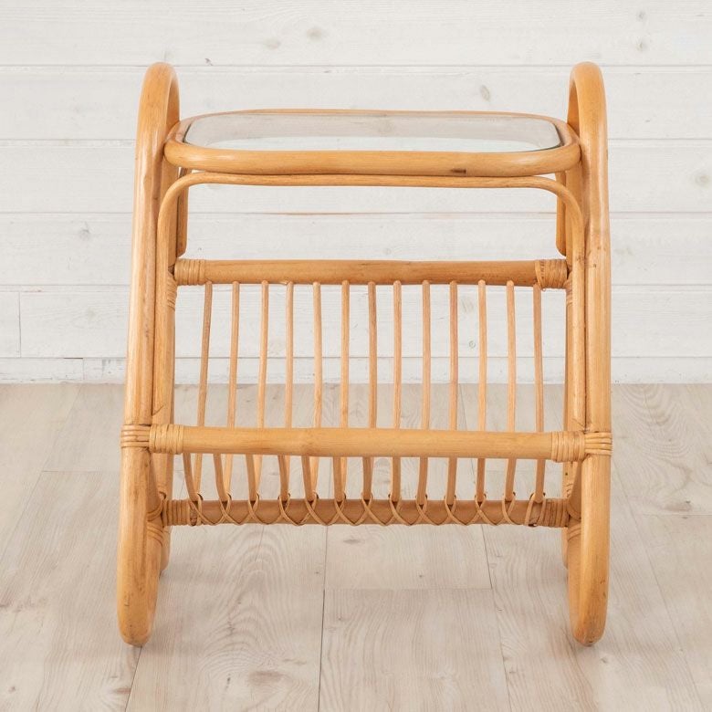 ガラス天板にはお茶を、下のラックには雑誌や本を置いてスッキリとまとめられます。