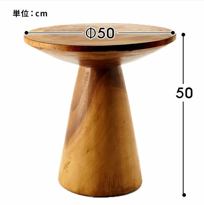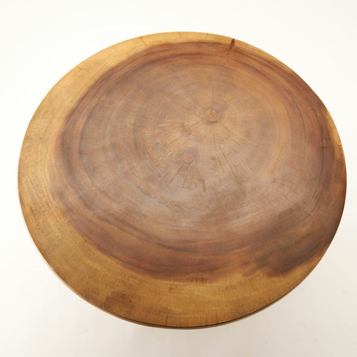 バリ島のヴィラに置いてありそうなサイドテーブルはありそうでなかなかない、シンプル&シックなサイドテーブル。木の持つ存在感はありますが直径50㎝なので家具の隙間に収まりやすいサイジングです。このモンキーポッドはウォルナットともチークとも違う、ゴールドブラウンという表現がピッタリな艶のある木です。重みはありますが、シンプルなフォルムで飽きが来ず、置く場所を変えて長く使って頂けるテーブルだと思います。使い込んでいくうちにさらに艶が増し、経年変化も楽しみです!