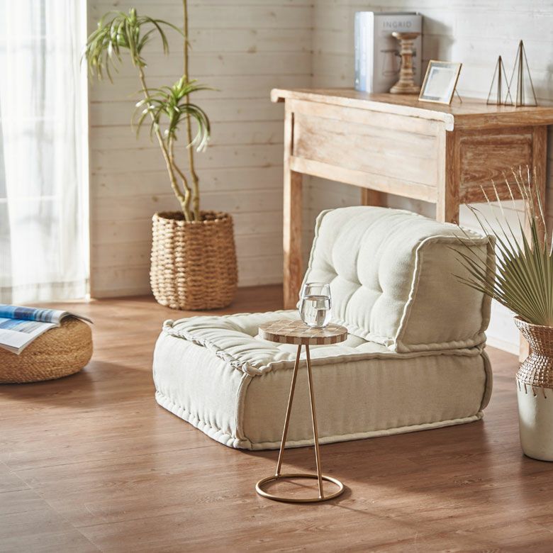 ソファやベットがワントーンでさみしく感じたらこんなアクセントになるサイドテーブルを添えるといいですね。合わせるものによって女性らしいコーディネートにもなりますし、海の似合うボーホースタイルのコーディネートにもマッチします。