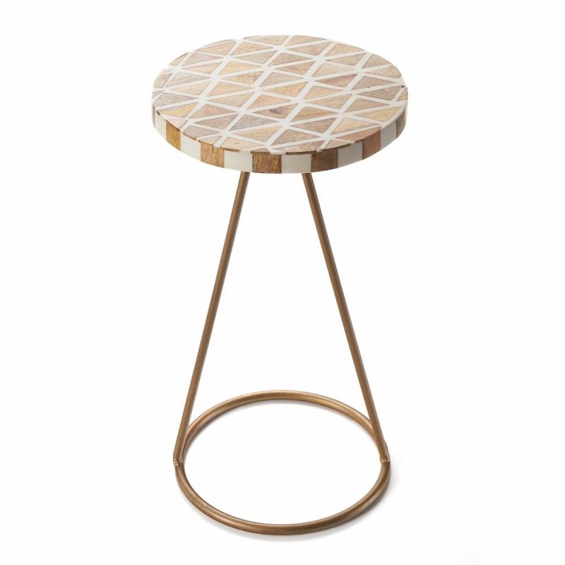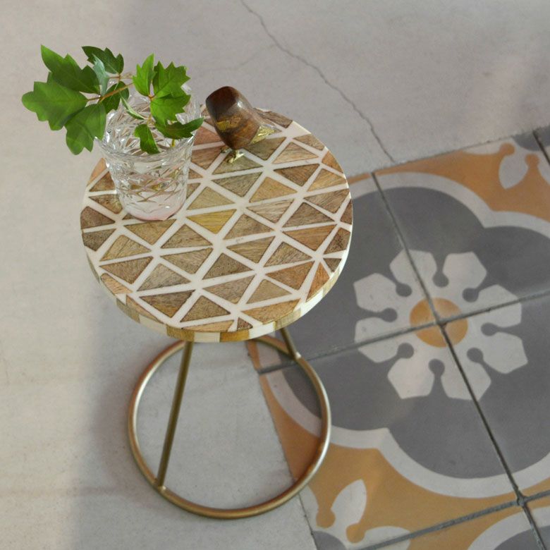 インド製ならではの、どことなく素朴でかわいい寄木調のミニテーブル。