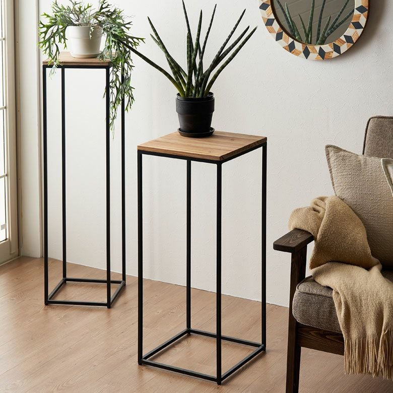 高さ違いで二種類置いてお気に入りのグリーンや香りアイテムを載せるとそれだけでオシャレな空間になりますよ。