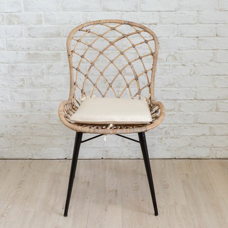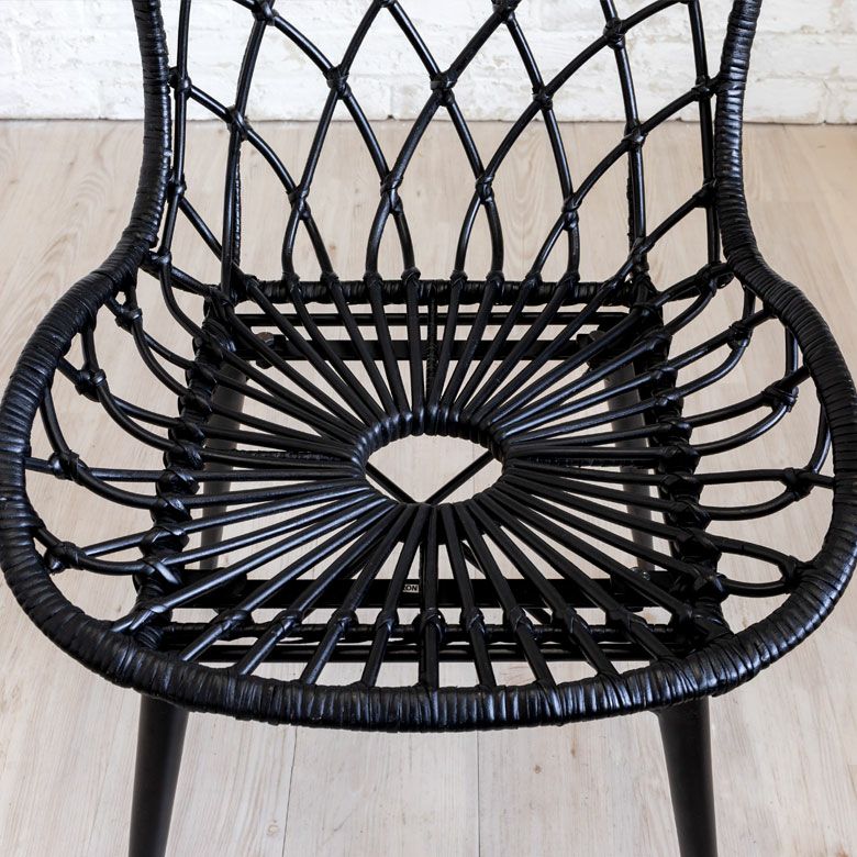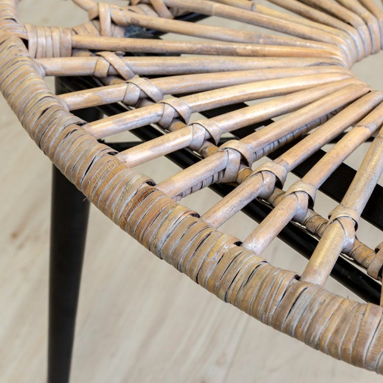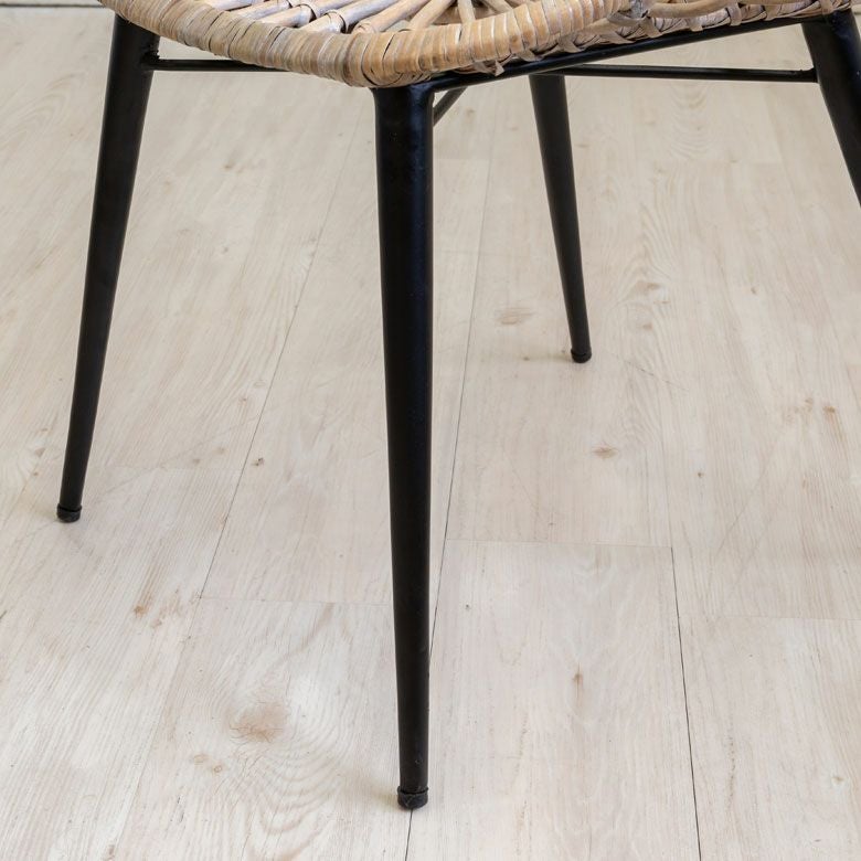 こちらのチェアはフレームやレッグにアイアンを使用し、細身のラタンで透け感を出すことでスッキリとした佇まいに仕上げました。