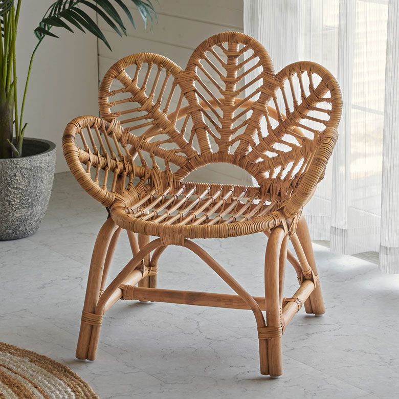 しなやかなラタン(籐)の曲線が美しい、フラワーチェア。
