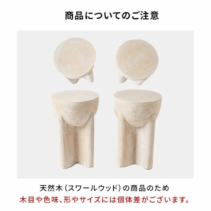 ご注意 | ※天然素材を使用しており商品によって色味が違います。 また、くさびやパテなどで穴を埋めて仕上げてある物もあります。天然木のためご了承ください。 ※無垢材は温度や湿度の変化により、ひび割れや反りが生じる可能性があるため、予めご了承の上ご購入ください。 ※本製品は、室内用のため室外では使用しないでください。 ※割れや裂けの原因になる為、直射日光の当たる場所や湿度の高い場所でのご使用はなるべく控えてください。 ※踏み台として使用しないでください。転倒してケガをするおそれがあります。 ※ハンドメイドのためサイズ・形・色合い・デザインには個体差がございます。 ※モニターの種類やパソコンの環境により、実際の商品のお色と若干異なる場合がございます。 |