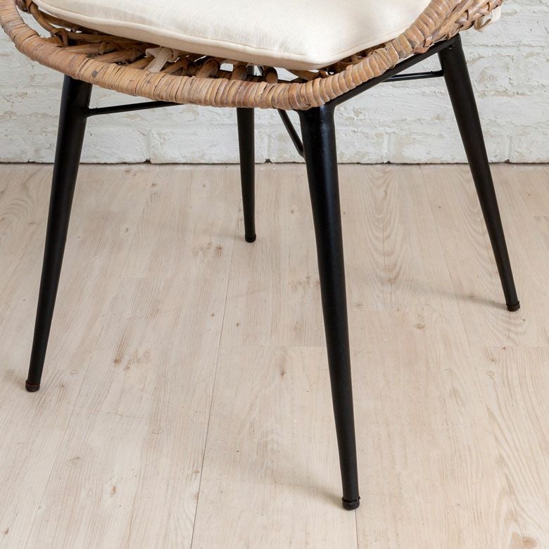 こちらのチェアはフレームやレッグにアイアンを使用し、細身のラタンで透け感を出すことでスッキリとした佇まいに仕上げました。