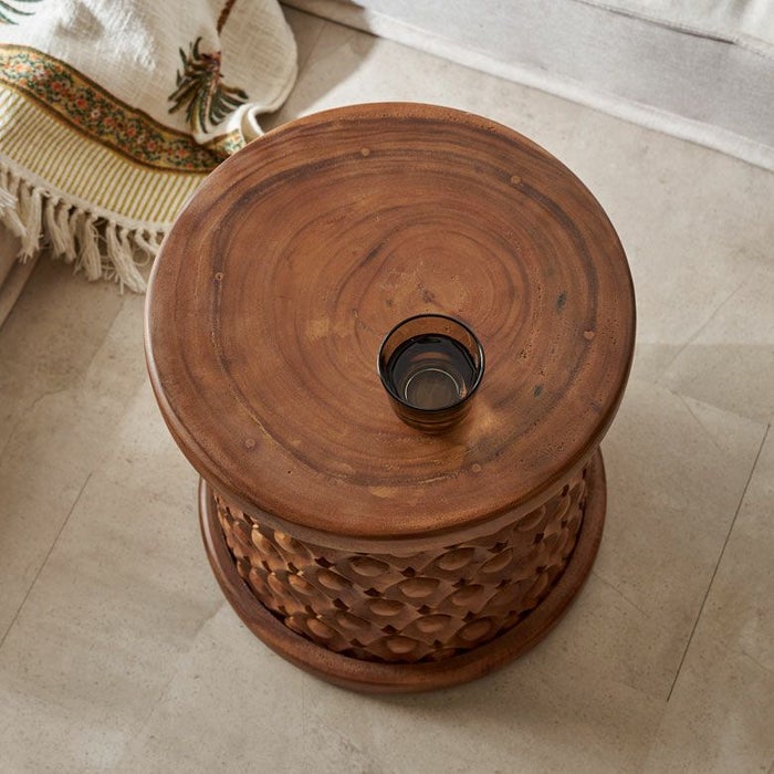 モンキーポッドの無垢材を使用した木彫りの丸太スツール |