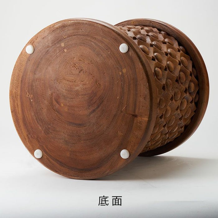 手彫りの凹凸が生み出す陰影が美しいこちらのスツールはモンキーポッドツリー(スワールウッド)と言われる大きな木から削り出されたもの。