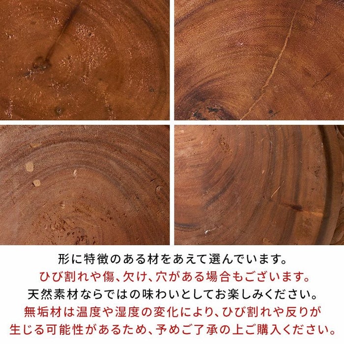 | ご注意 | ※天然素材を使用しており商品によって色味が違います。 また、くさびやパテなどで穴を埋めて仕上げてある物もあります。天然木のためご了承ください。 ※無垢材は温度や湿度の変化により、ひび割れや反りが生じる可能性があるため、予めご了承の上ご購入ください。 ※本製品は、室内用のため室外では使用しないでください。 ※割れや裂けの原因になる為、直射日光の当たる場所や湿度の高い場所でのご使用はなるべく控えてください。 ※踏み台として使用しないでください。転倒してケガをするおそれがあります。 ※ハンドメイドのためサイズ・形・色合い・デザインには個体差がございます。 ※モニターの種類やパソコンの環境により、実際の商品のお色と若干異なる場合がございます。 |