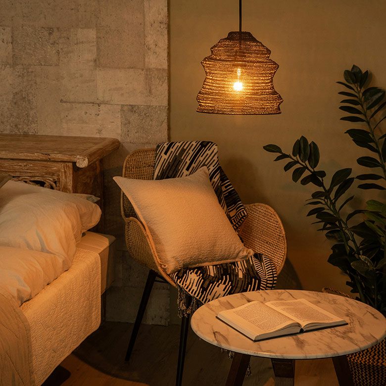 繊細なワイヤーから広がる光が、個性溢れる空間を演出します。