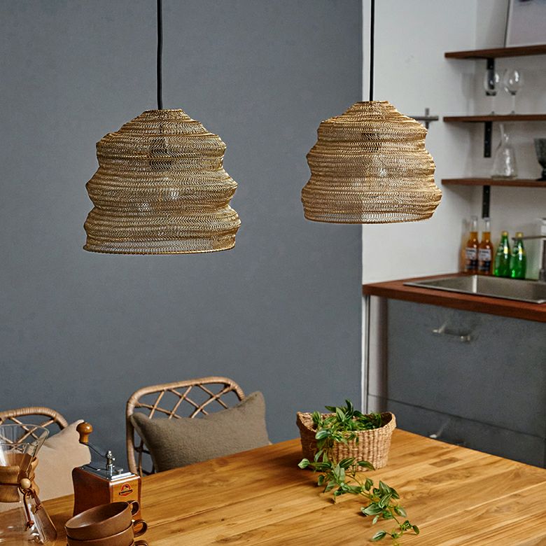 | ご注意 | ※当商品はシェードのみです。ソケット・電球は付属していません。 ※電球は別売りです。(熱くならないLED電球推奨) ※製造工程上、商品には歪みなどがございますので、必ずしも写真と同じ形ということはございません。 ※ハンドメイドですので、写真とデザインや色合いが多少異なる場合がございます。 ※繊細なワイヤーを使用した商品のため、鋭利な部分がある場合がございます。ソケット取り付け時などにケガをしないよう、取り扱いには十分ご注意下さい。 ※対応電球以外の電球はご使用にならないでください。(使用可能ワット数〜100W) ※電球をお取替えの際は、口金、シェードサイズをご確認ください。 ※モニターの種類やパソコンの環境により、実際の商品のお色と若干異なる場合がございます。 ※商品画像に使用している電球は使用イメージです。電球は付属しません。 |