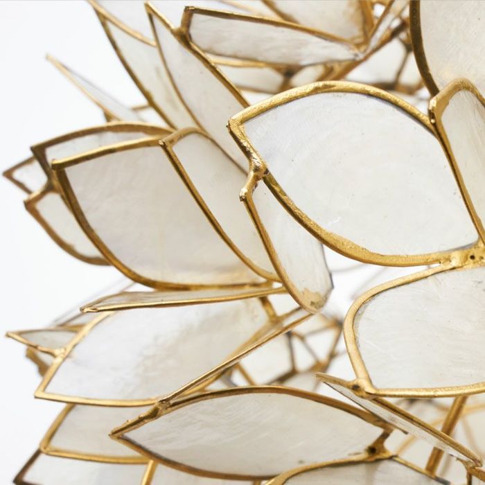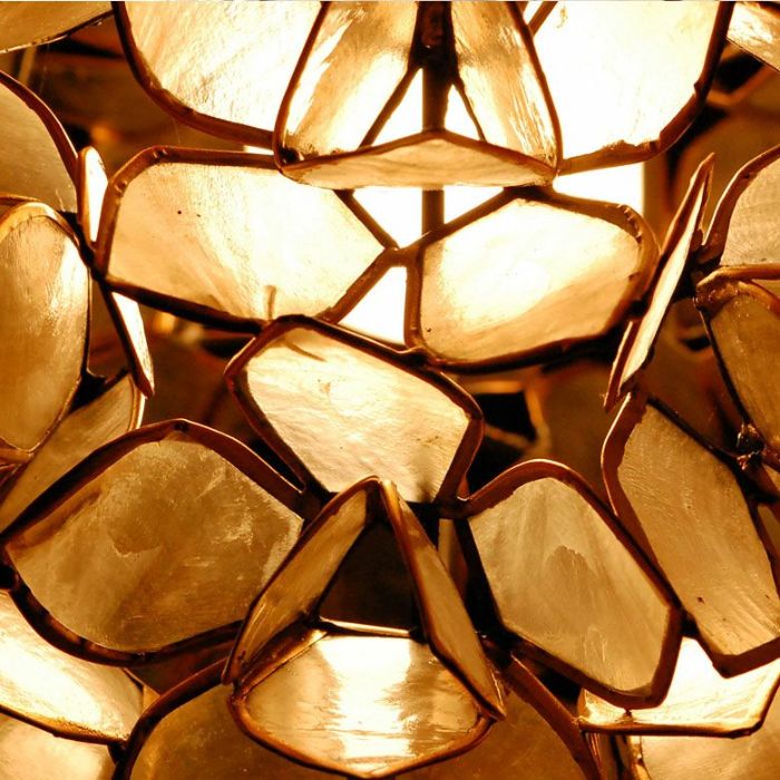 蓮の花が咲いたような、カピスシェルが幾重にも重なっているペンダントライト。