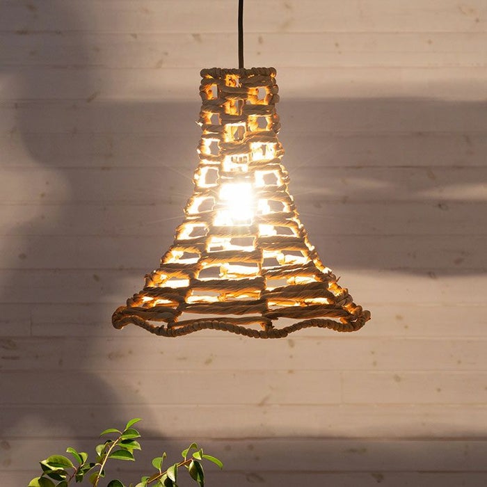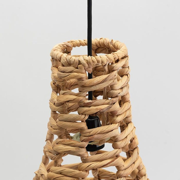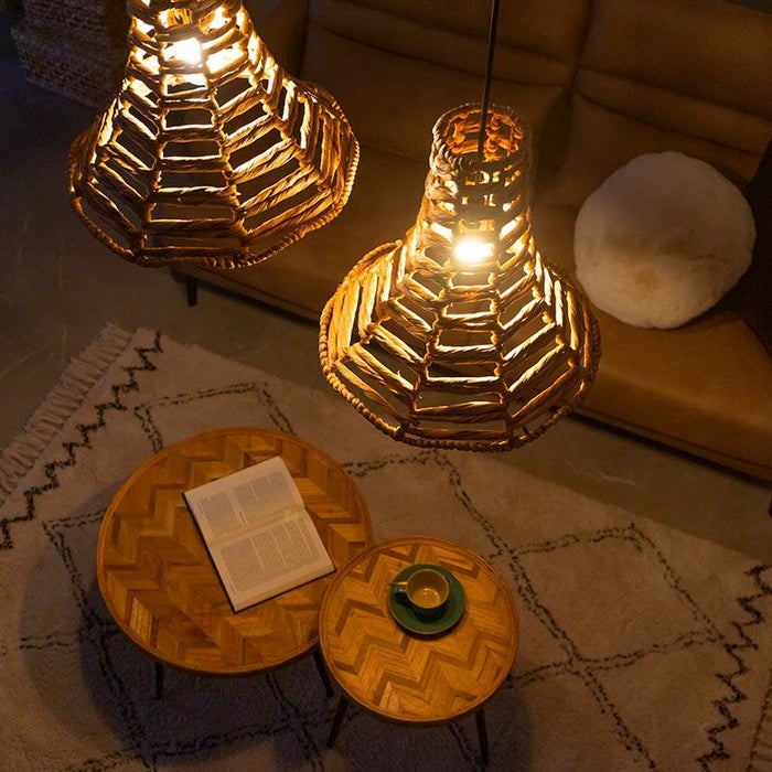 こちらはウォーターヒヤシンスと呼ばれる水草の一種で編まれたランプ。