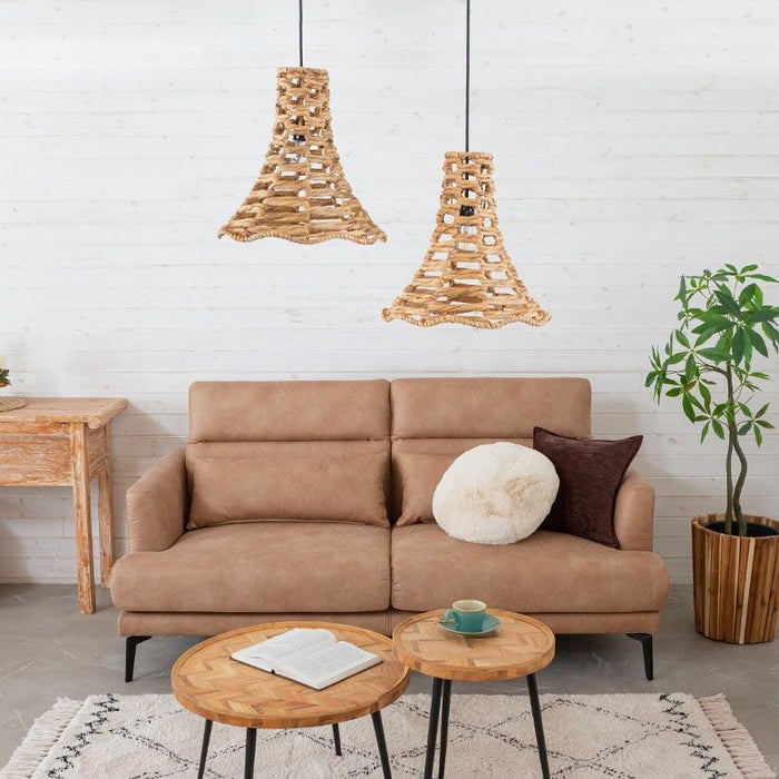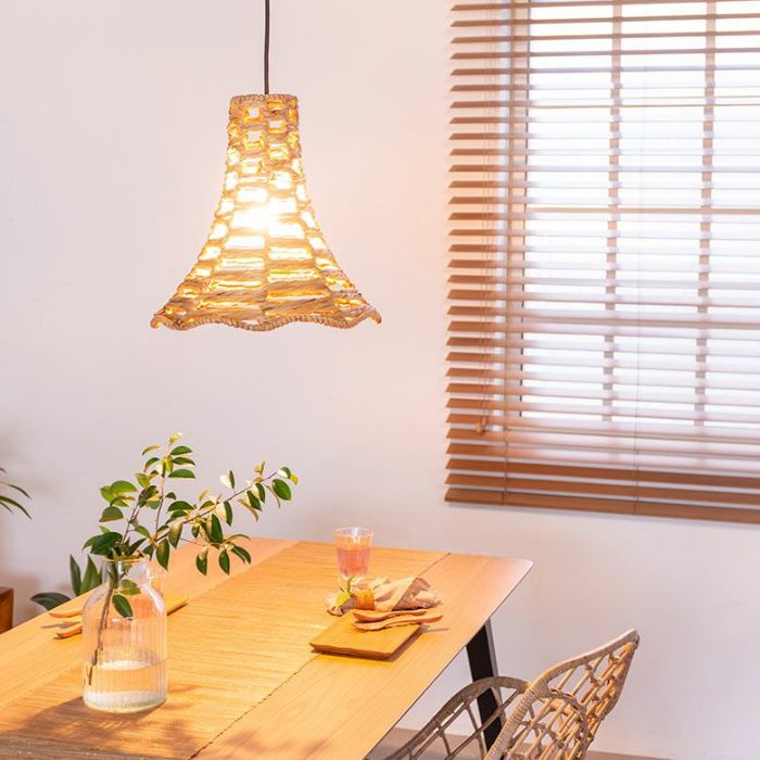 ヒヤシンスはラタン(籐)やバンブー(竹)素材と違って、触ると弾力のある柔らかい素材。その柔らかいヒヤシンスの素材が光を通して部屋全体に広がり、今までのインテリアに優しさと温もりを与えてくれます。