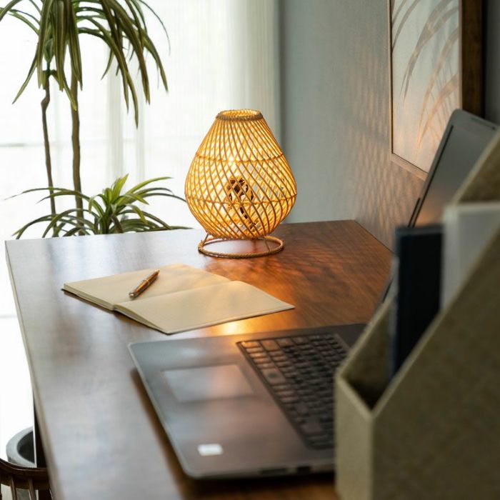こちらのテーブルランプはそのインドネシアで、職人さんの手で一つ一つ作られています。