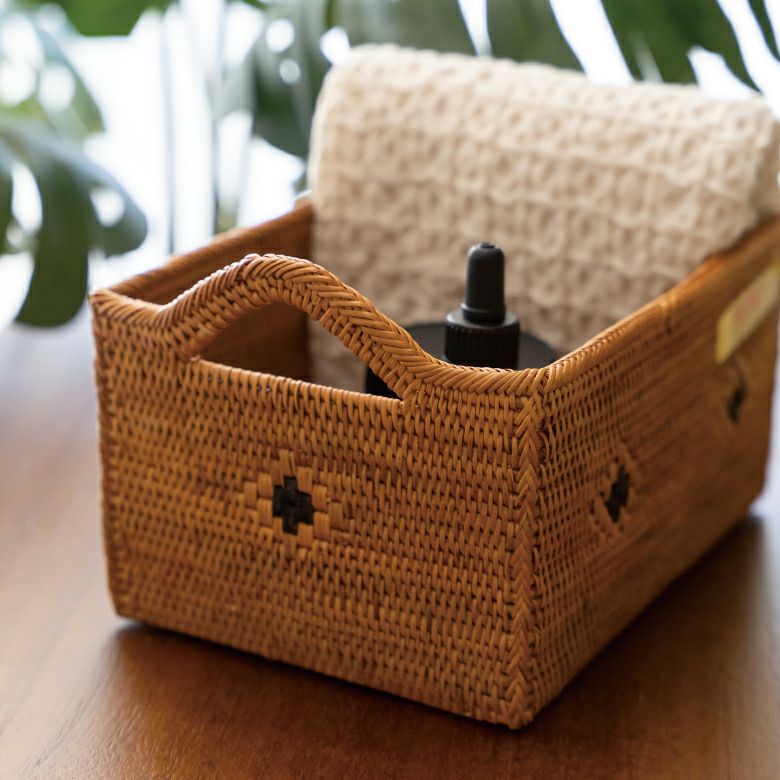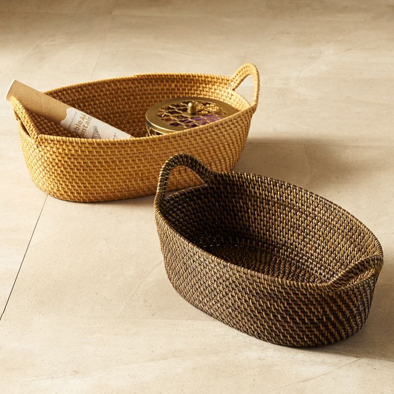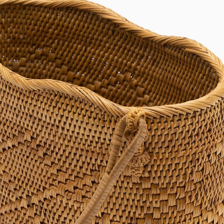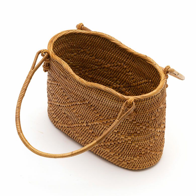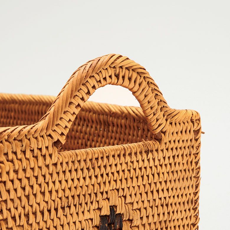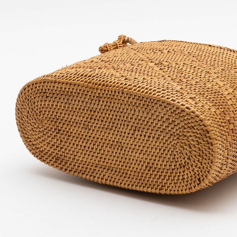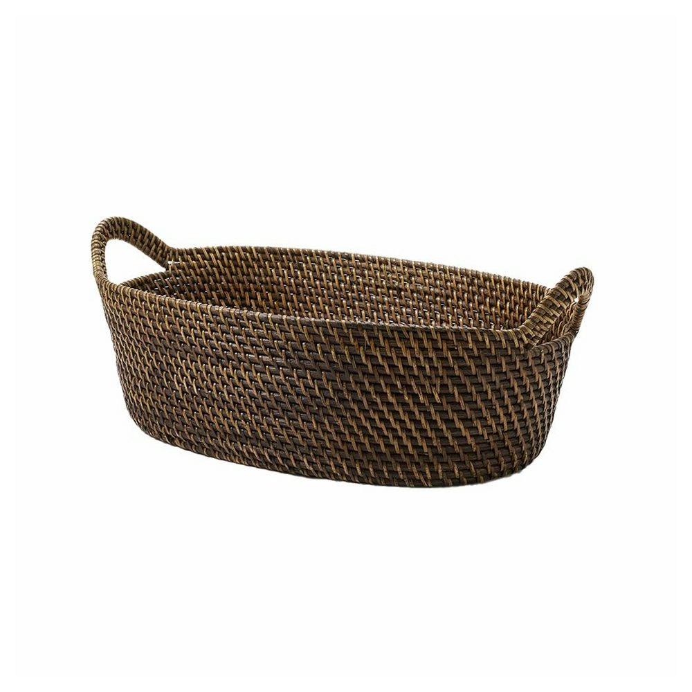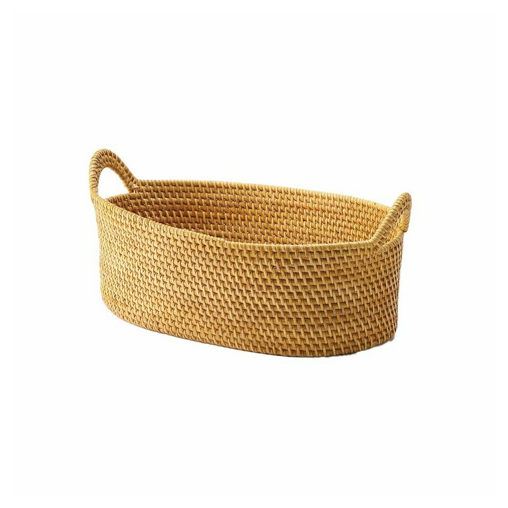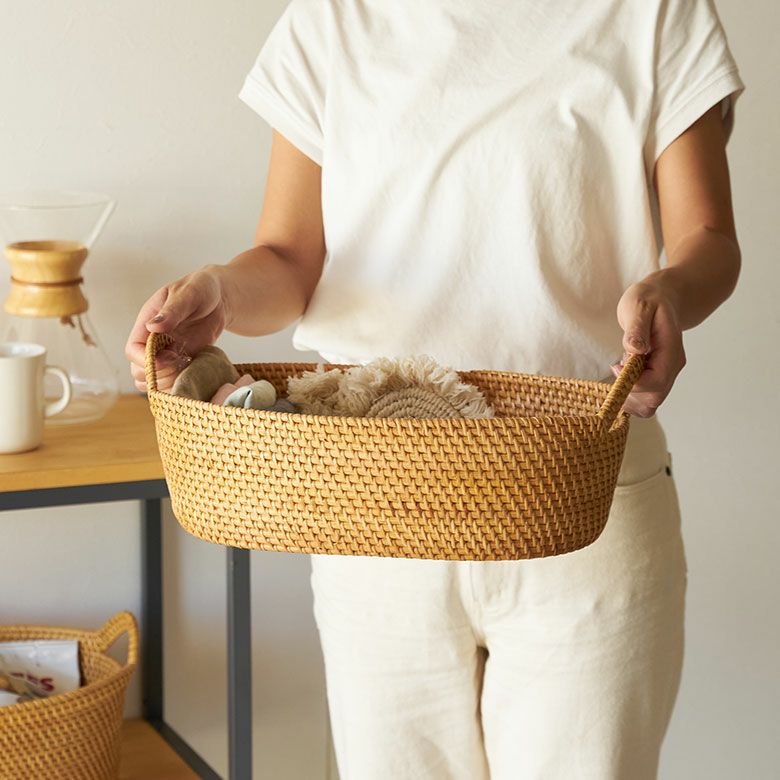 ラタンのハンドル付きオーバルバスケット Sサイズ