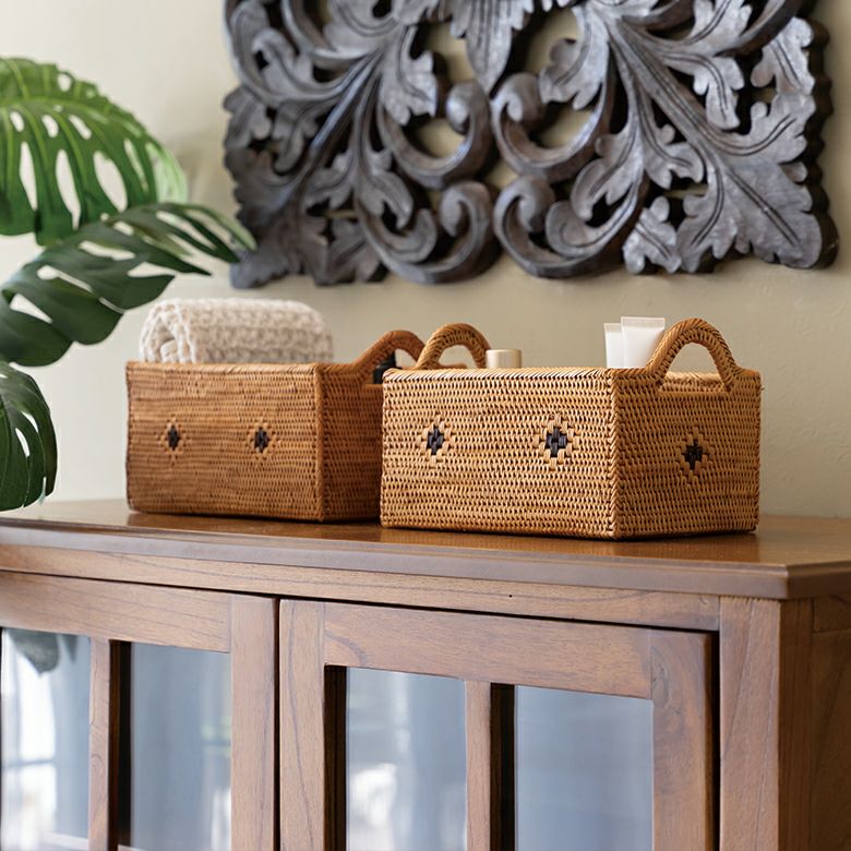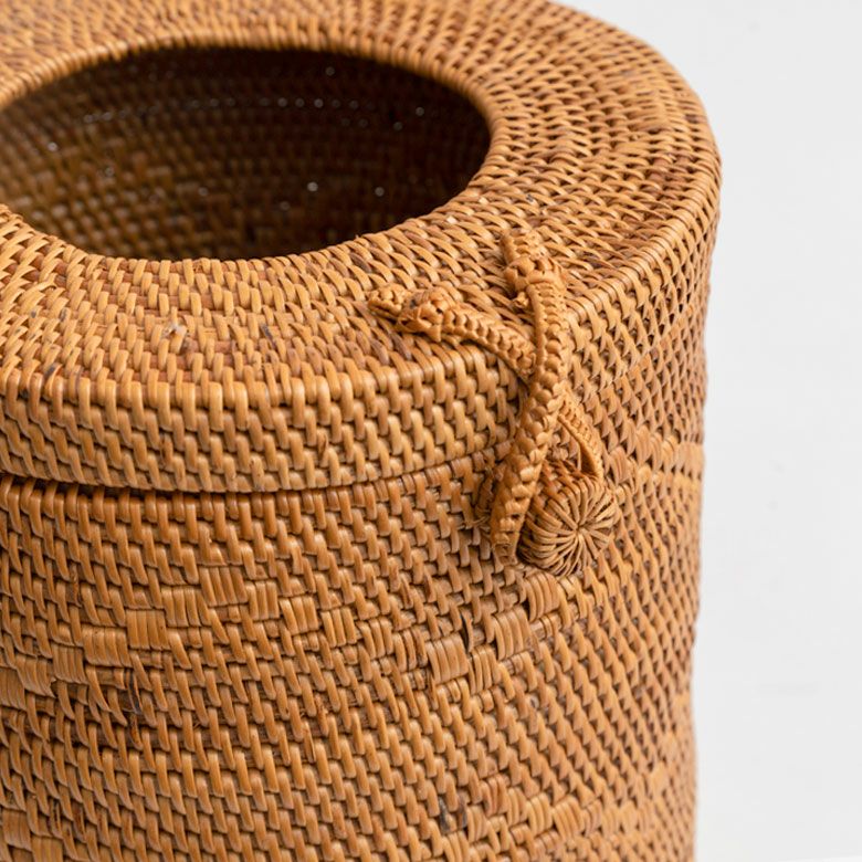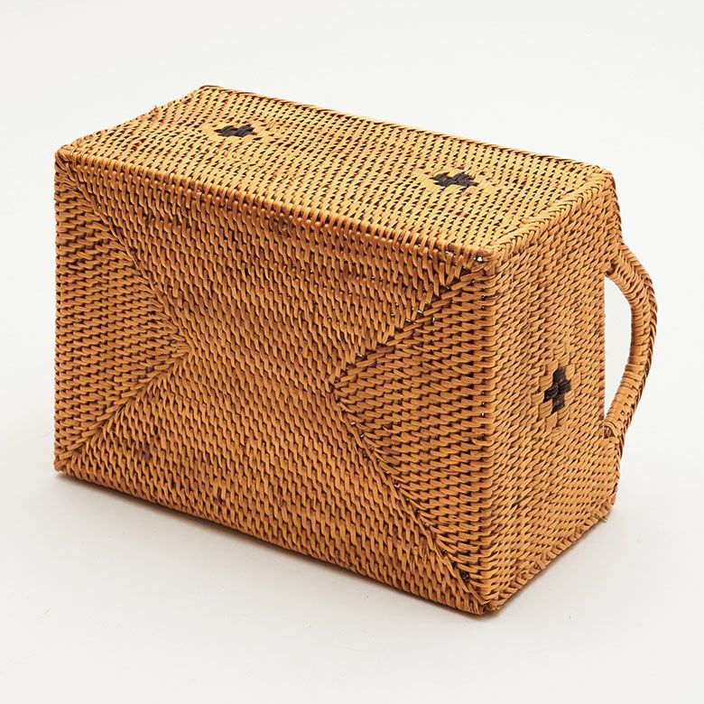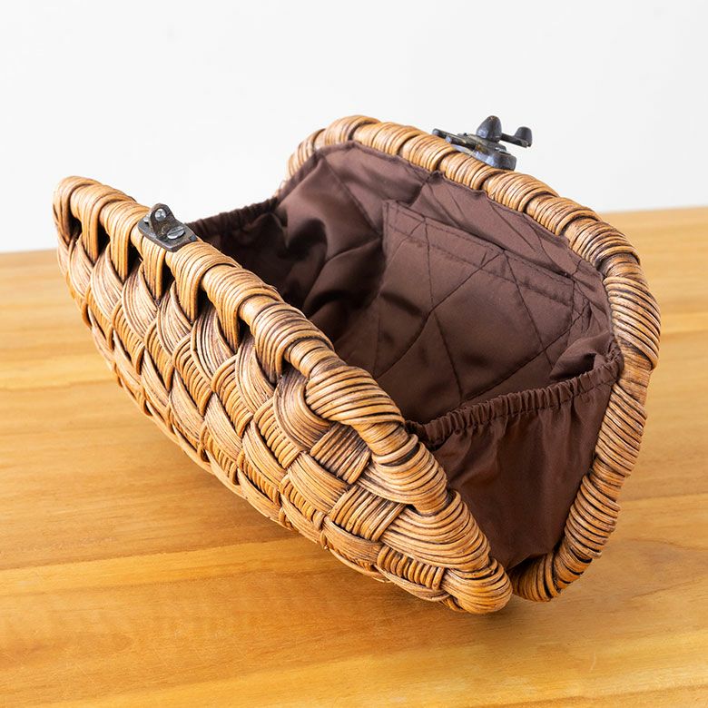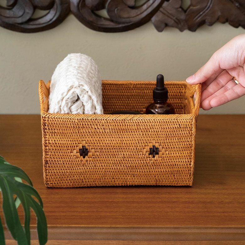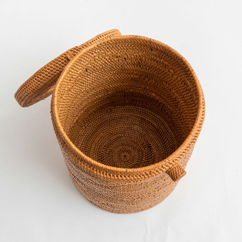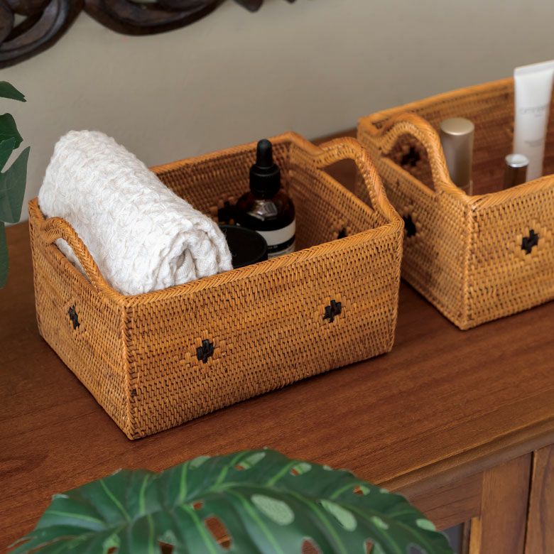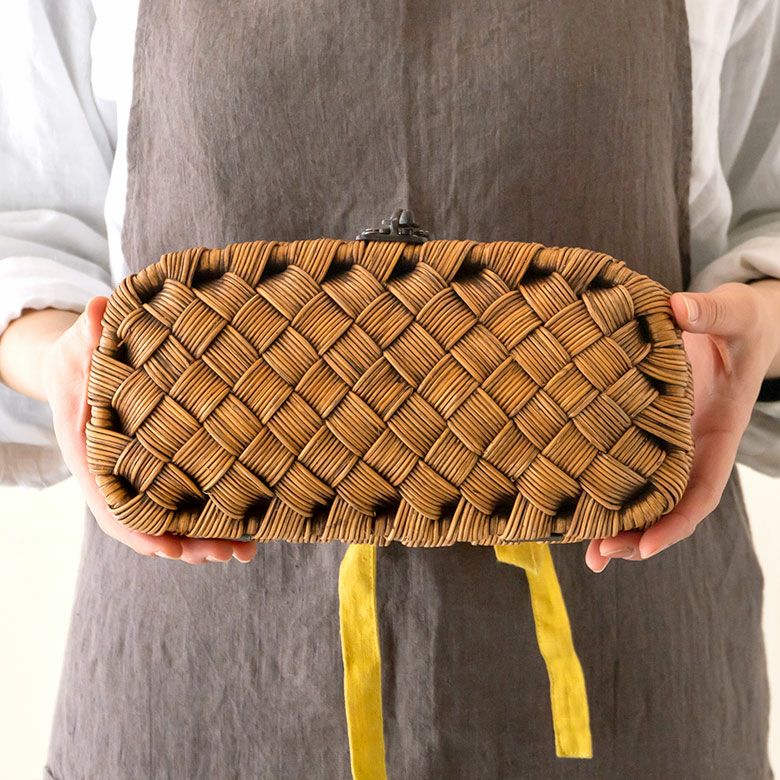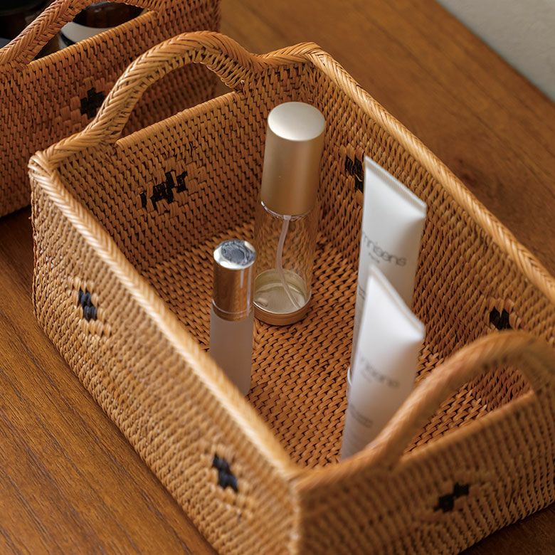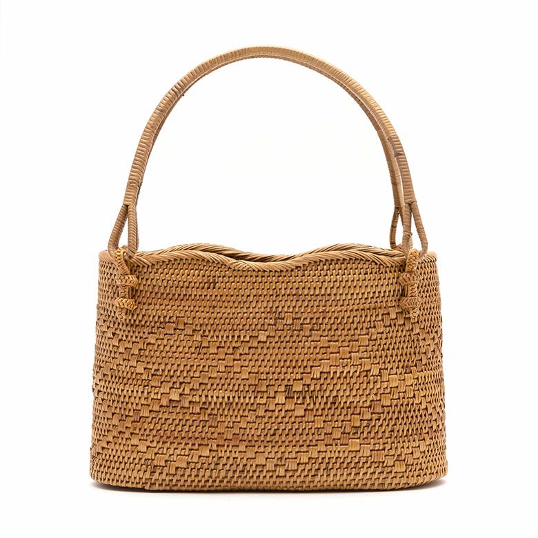 ラタンのハンドル付きオーバルバスケット Sサイズ