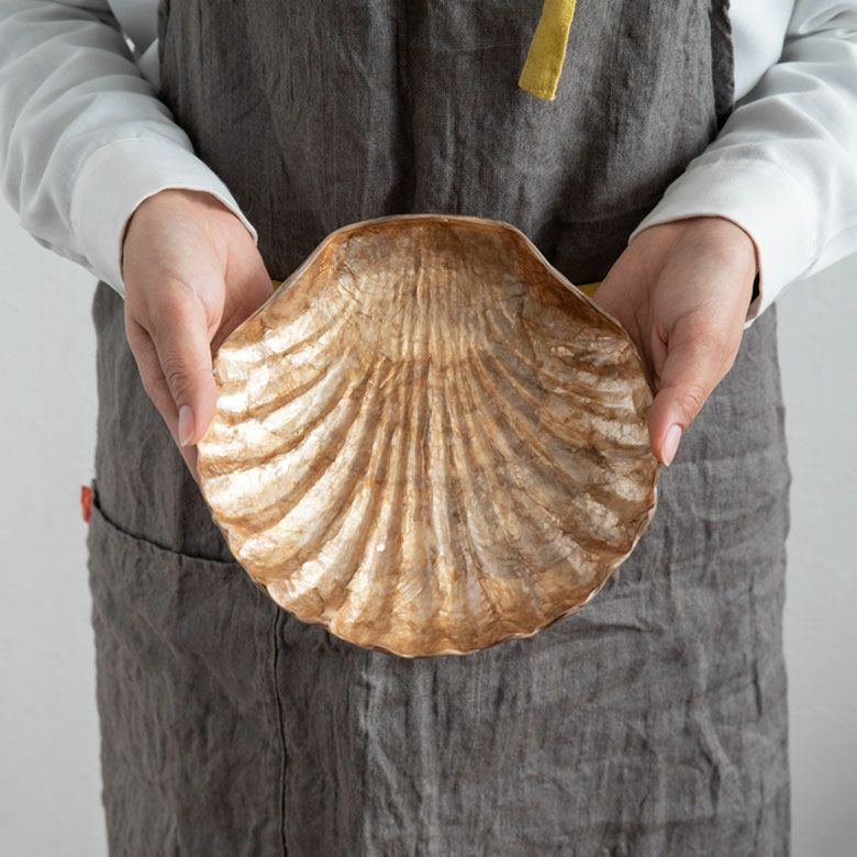 ゴールドの色が光輝く綺麗なシェル型デコレーショントレイ
