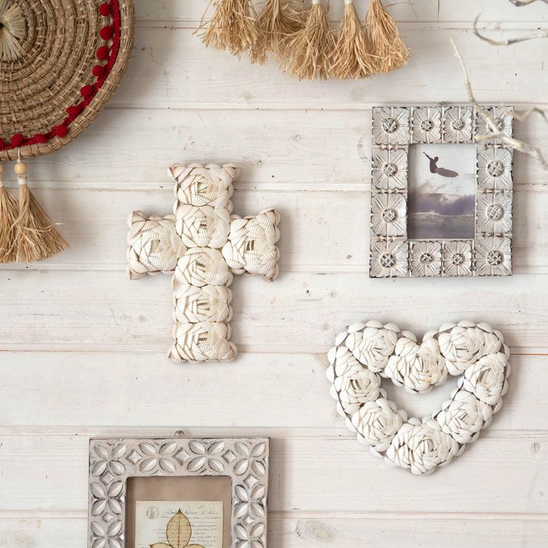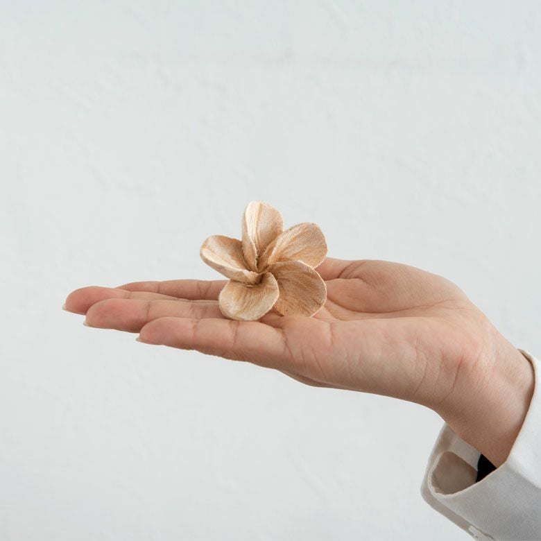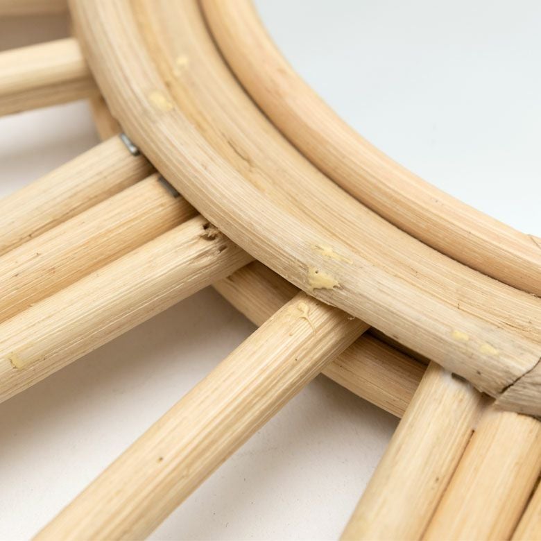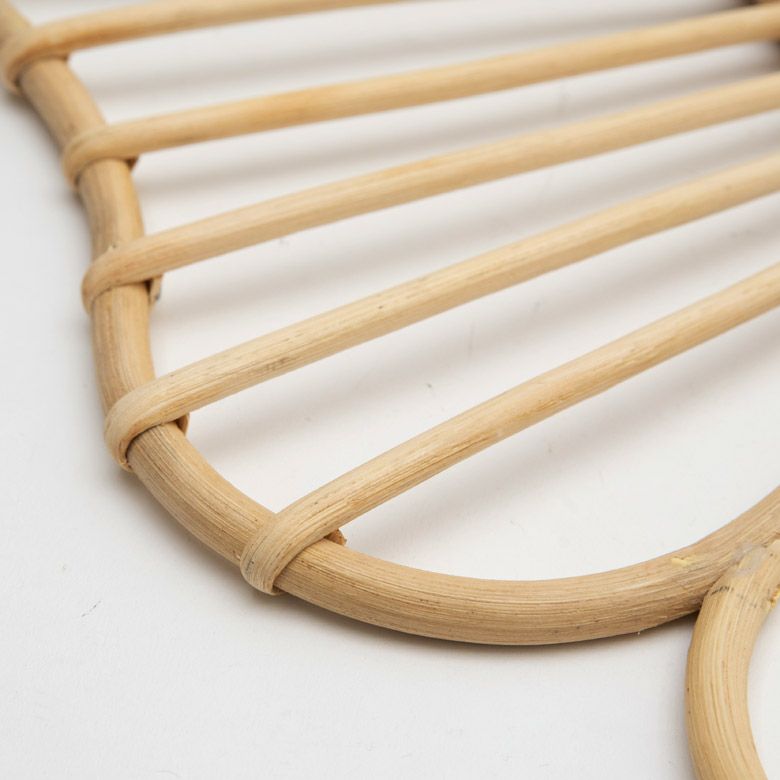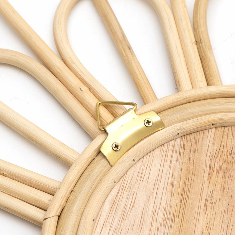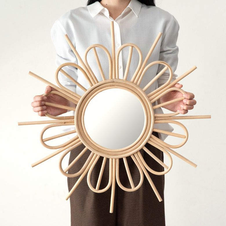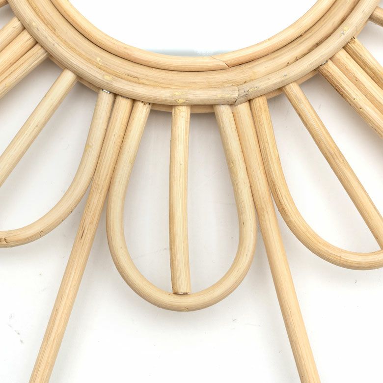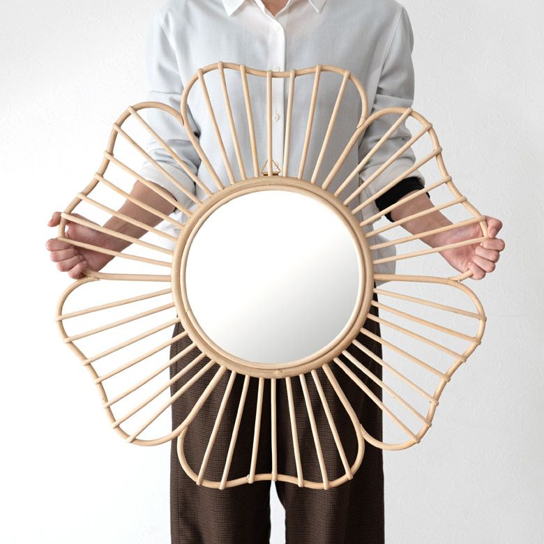 優しい印象の花形 アートのようなラタン製ウォールミラー