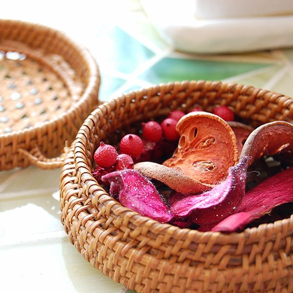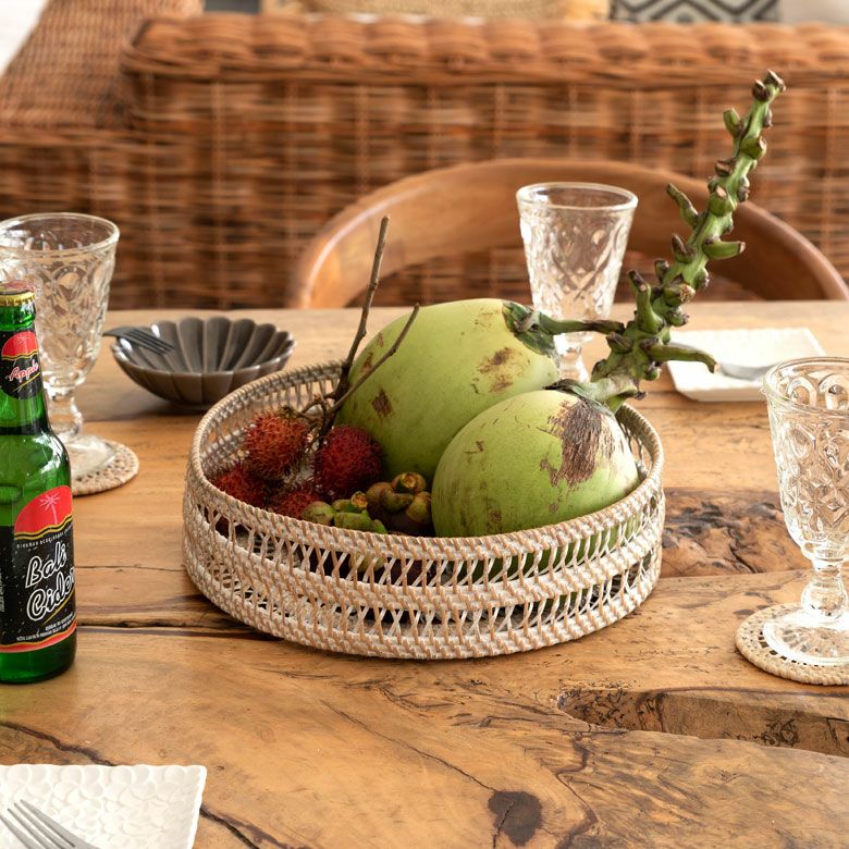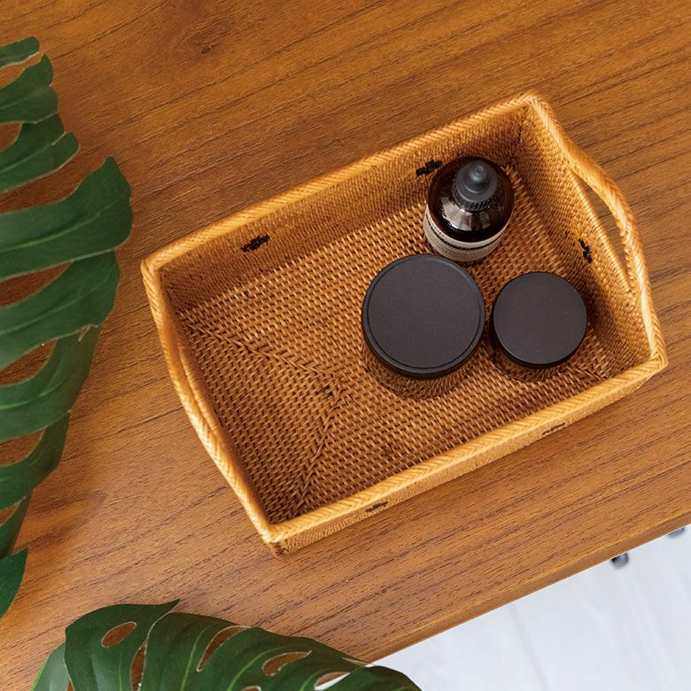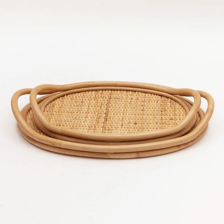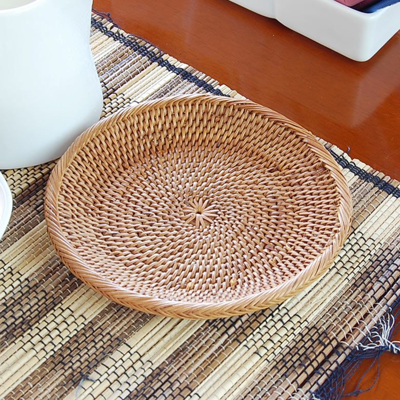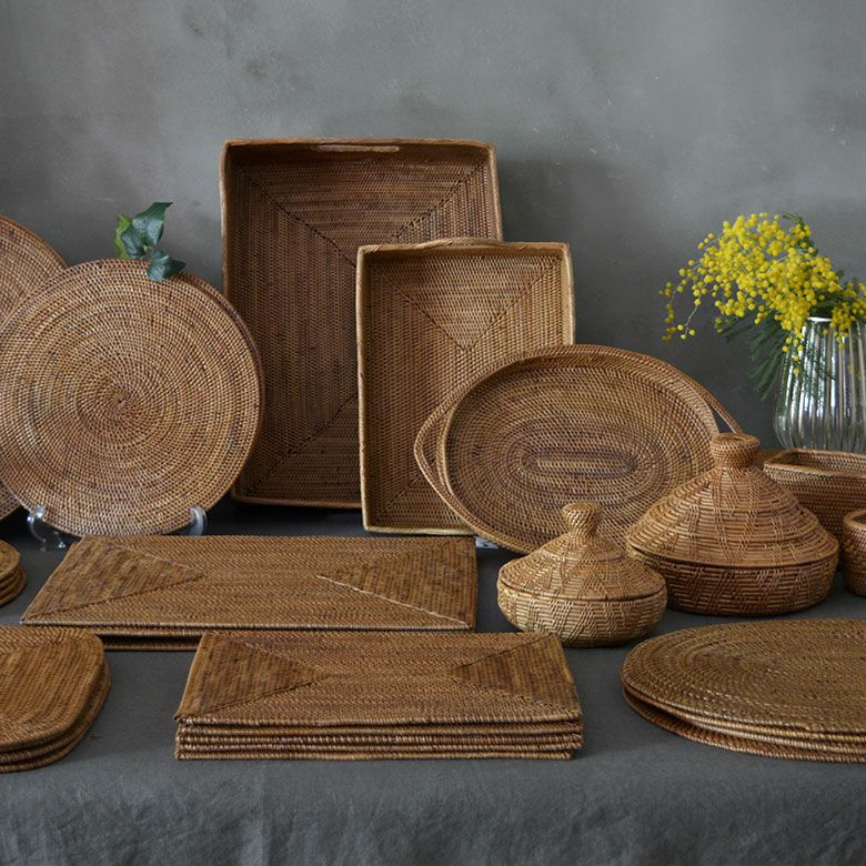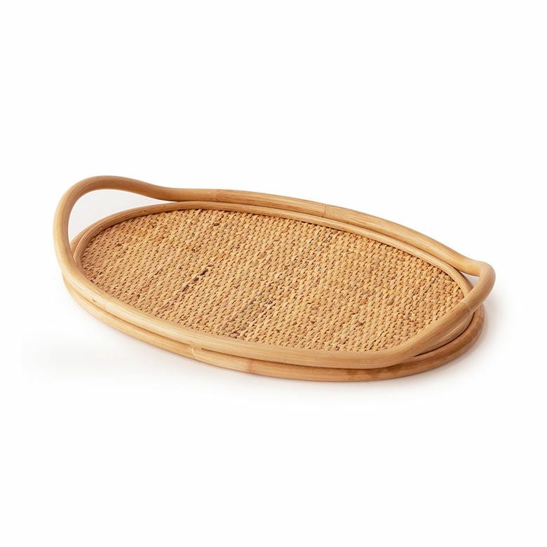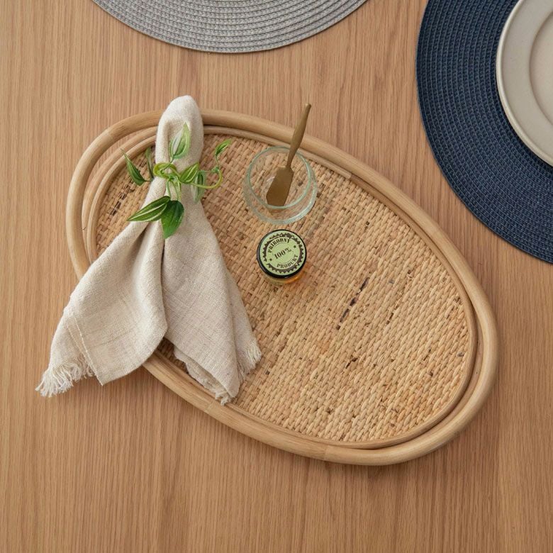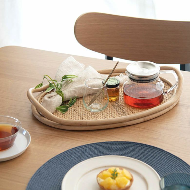 しなやかな曲線が美しい、籐のお盆。ランチトレーにも。