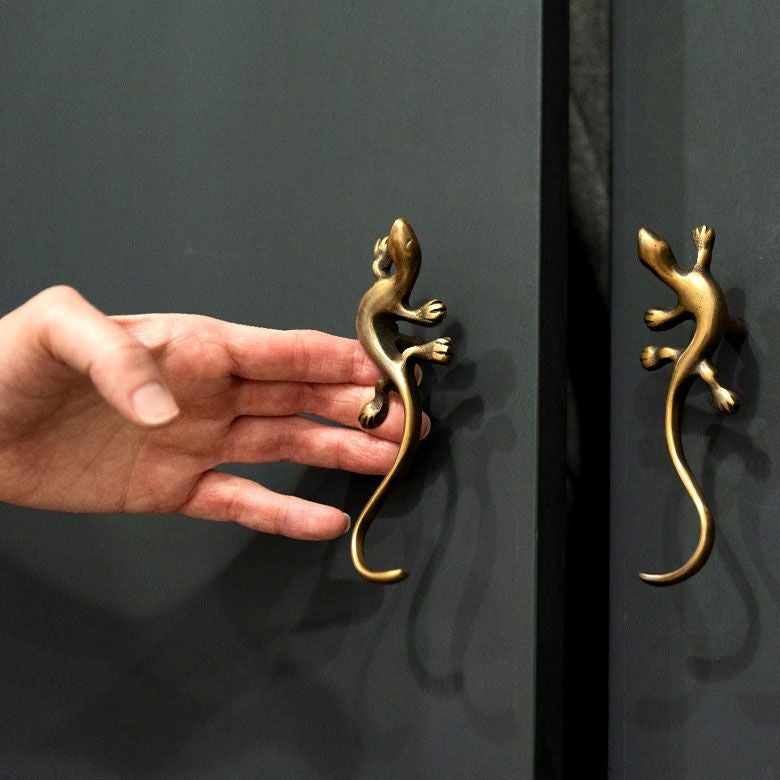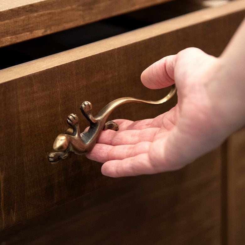 オーキッド(蘭の花)デザインの真鍮ハンドル(M)