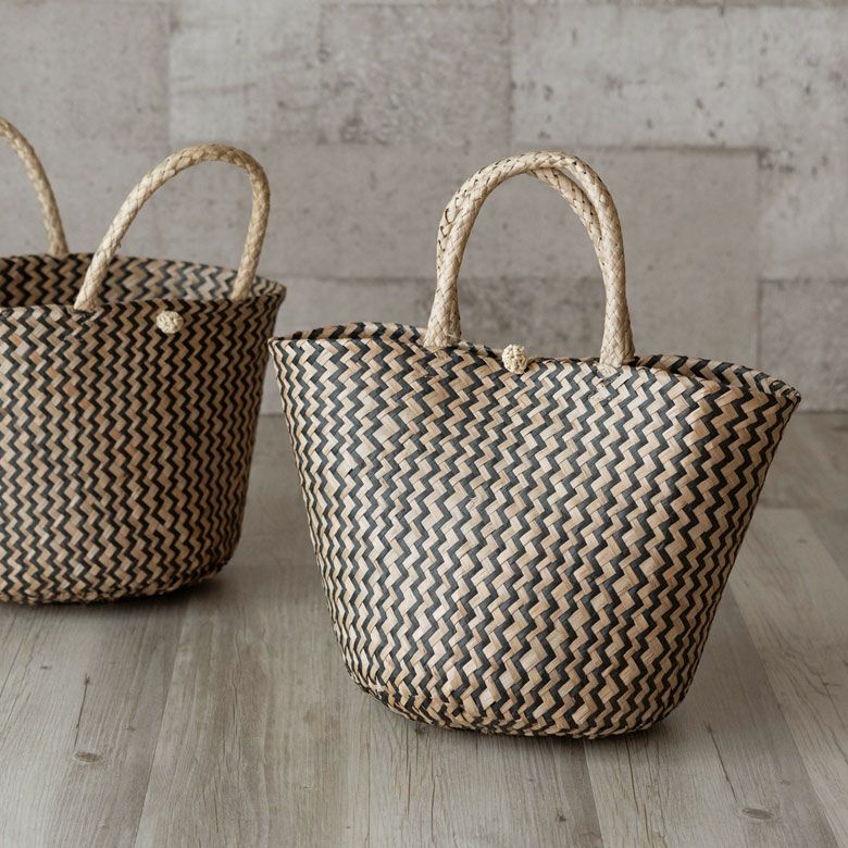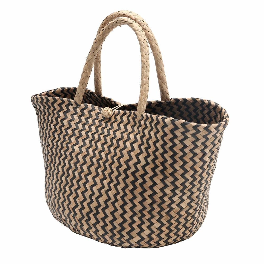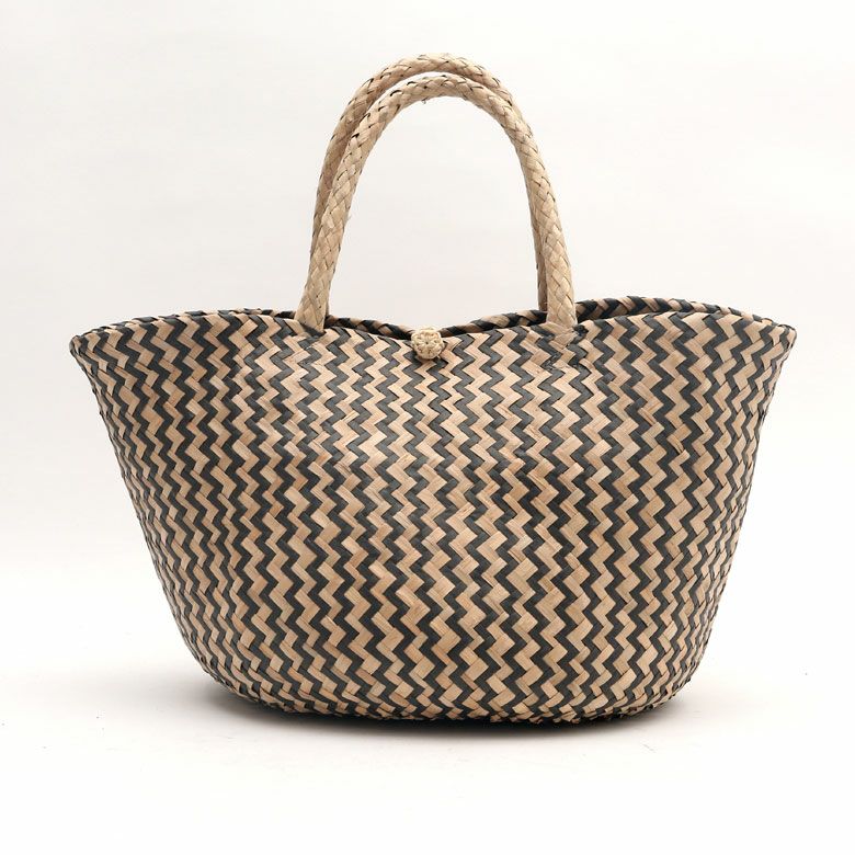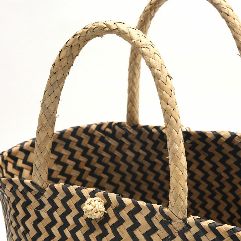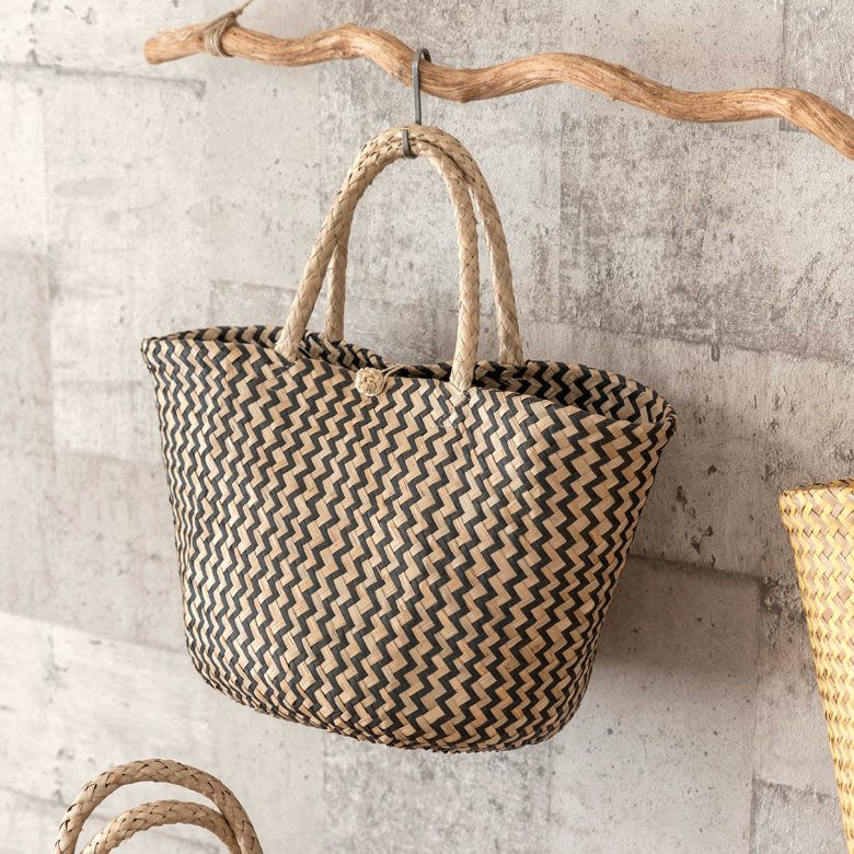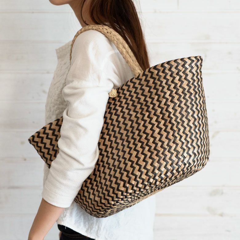 シーグラス製シェブロン柄トートバッグ(ブラック)
