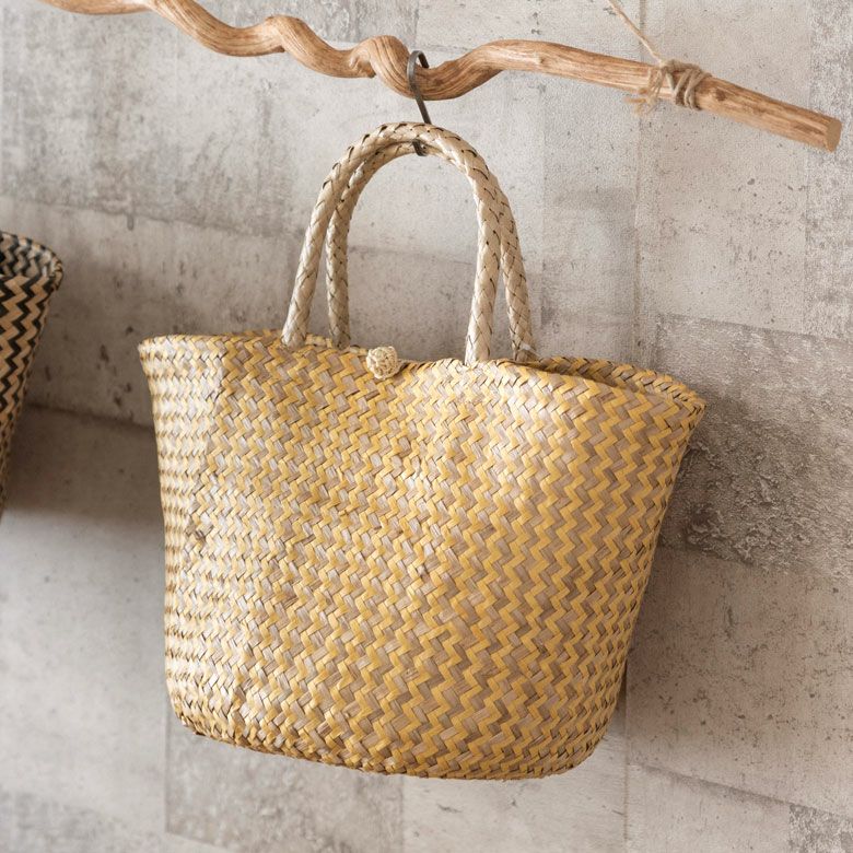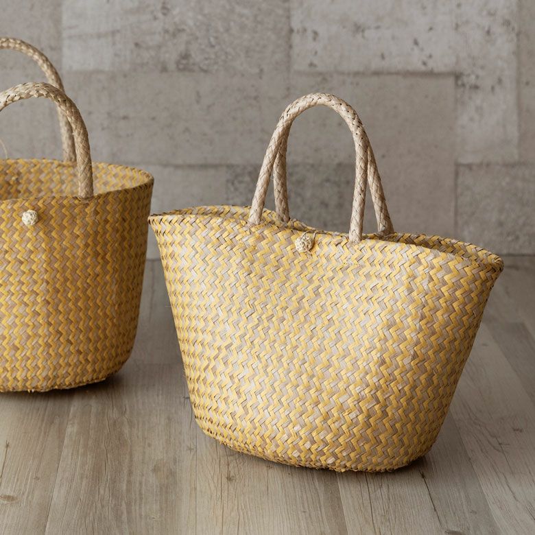 シーグラス製シェブロン柄トートバッグ(イエロー)