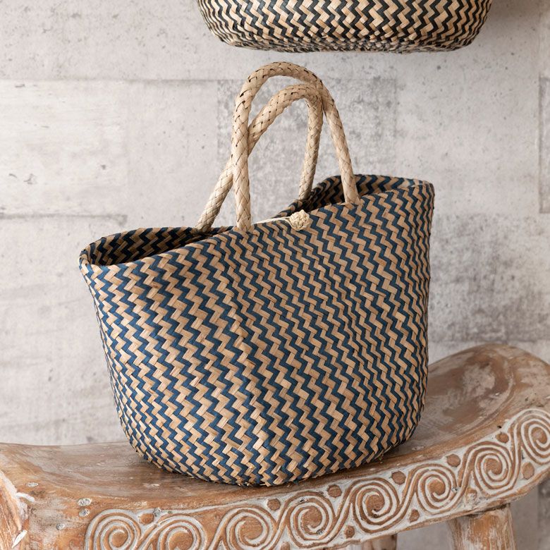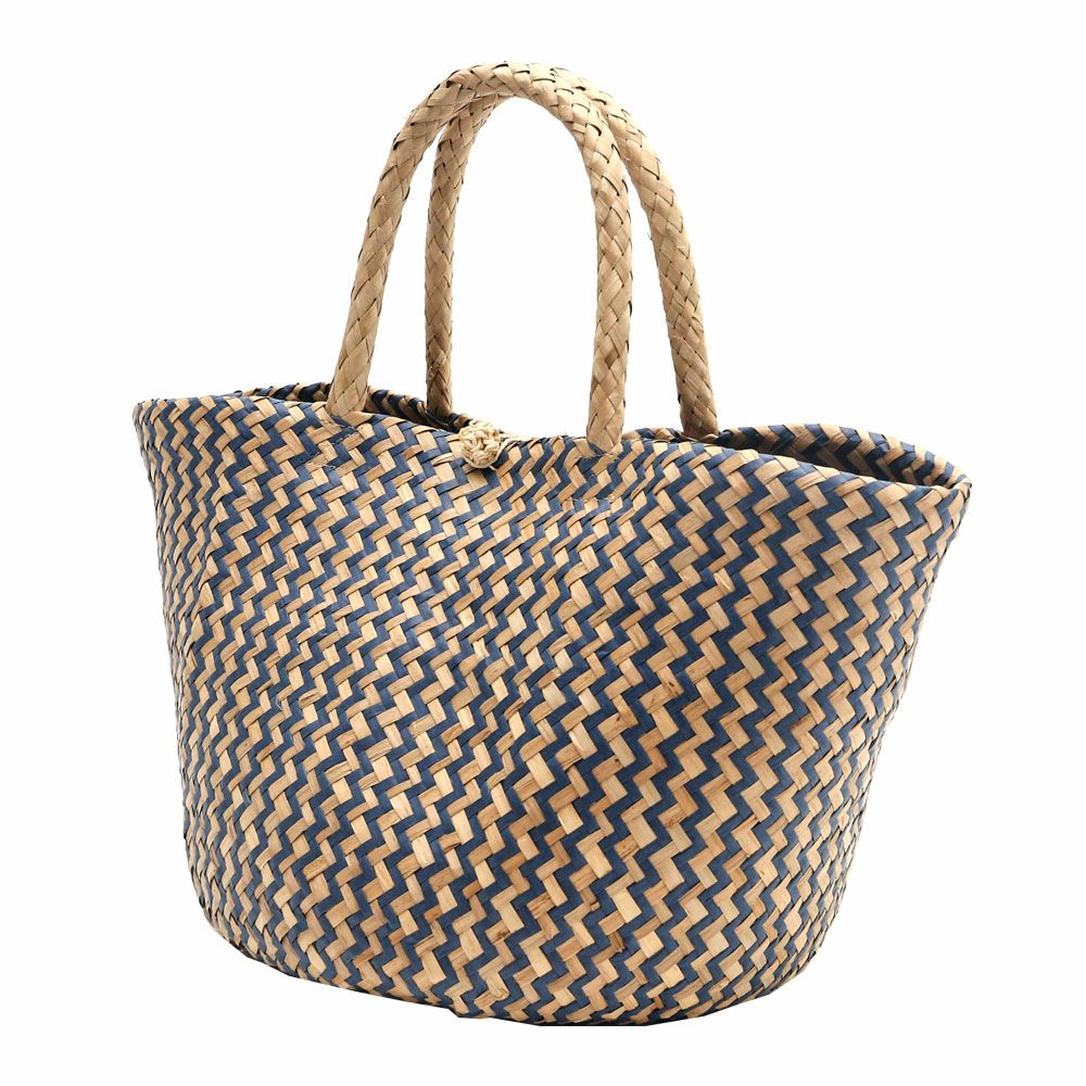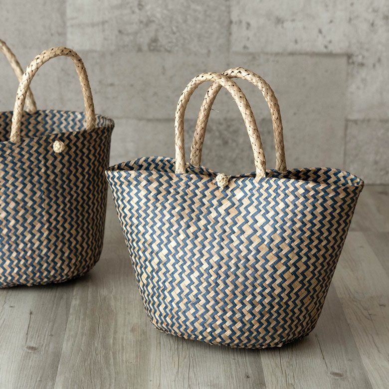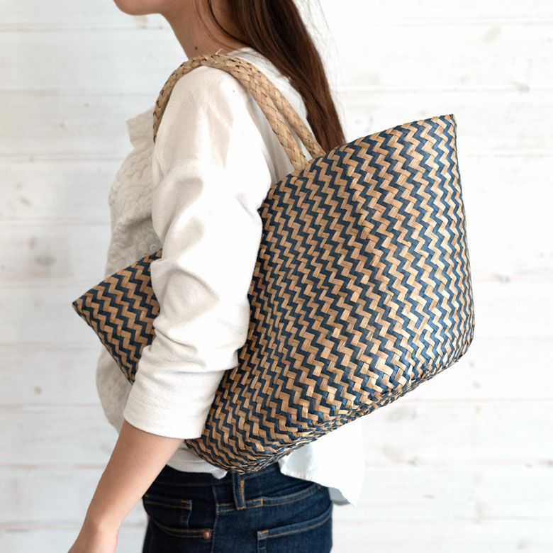シーグラス製シェブロン柄トートバッグ(ネイビー)