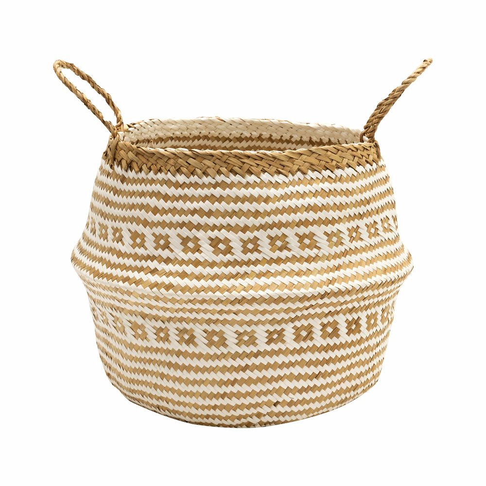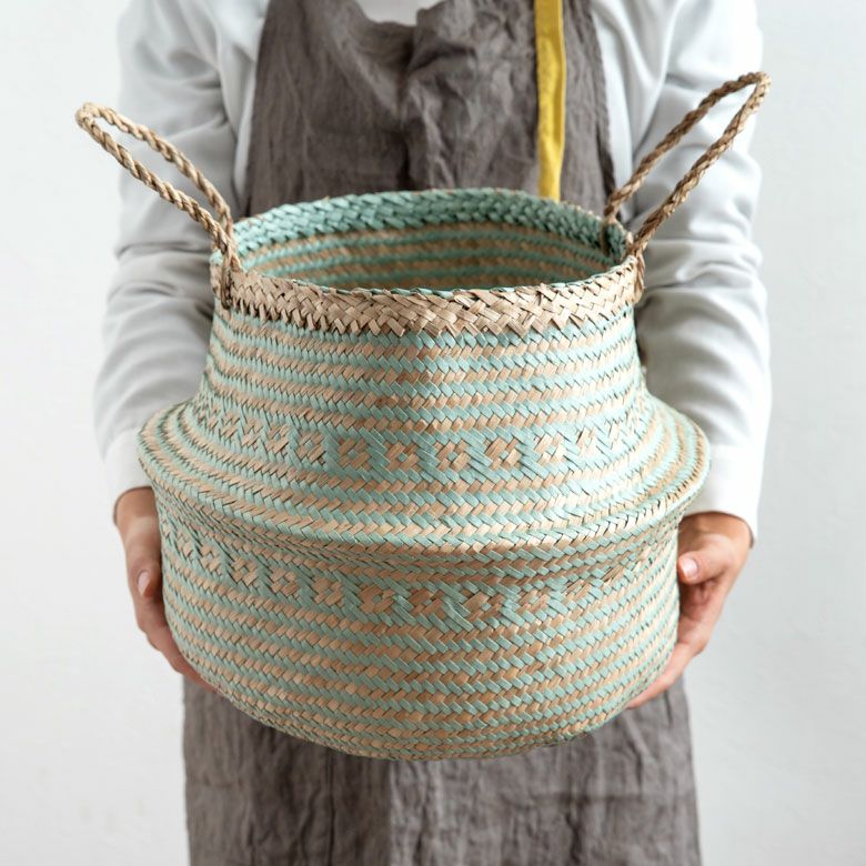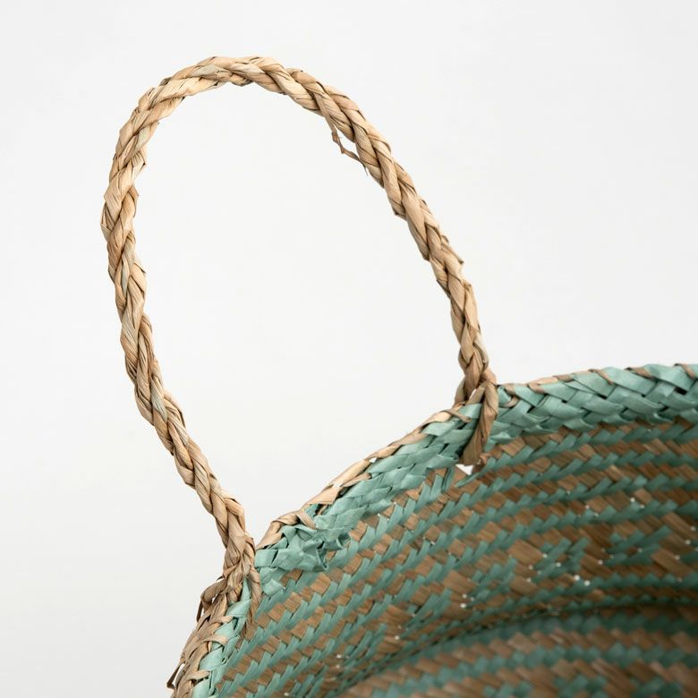 2トーンカラーのハンドル付きシーグラスバスケット L