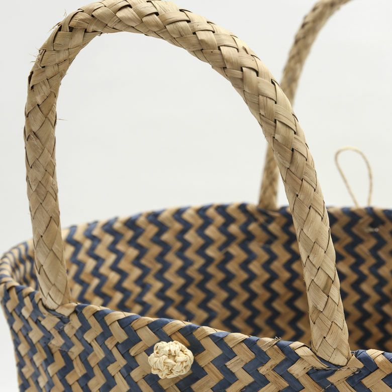 シーグラス製持ち手付き丸型バスケット(シェブロン)