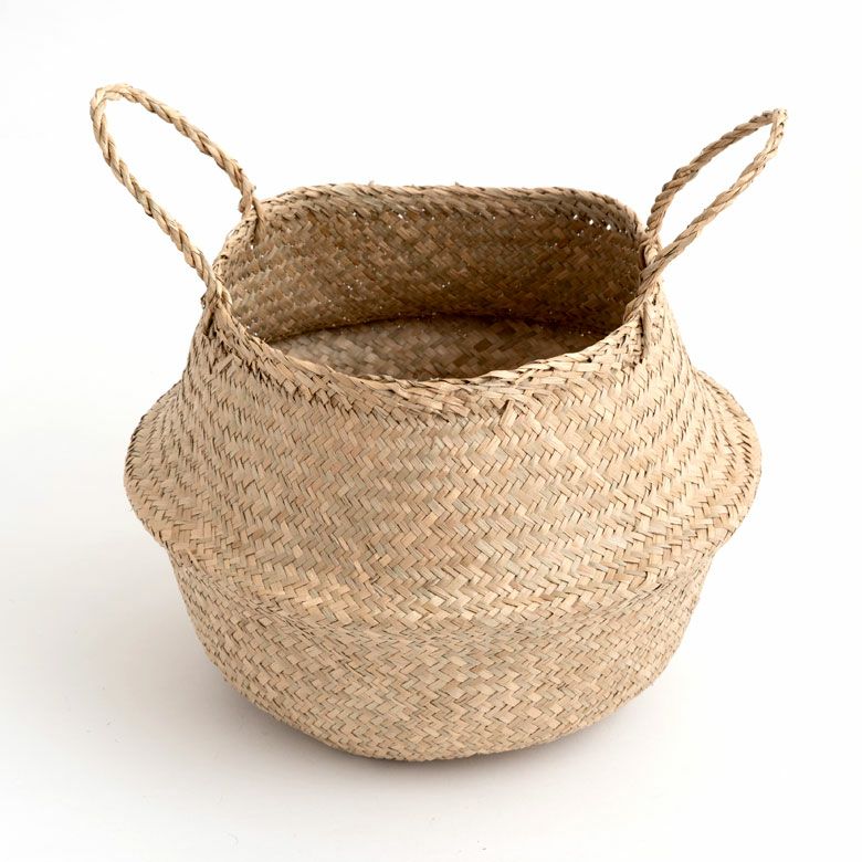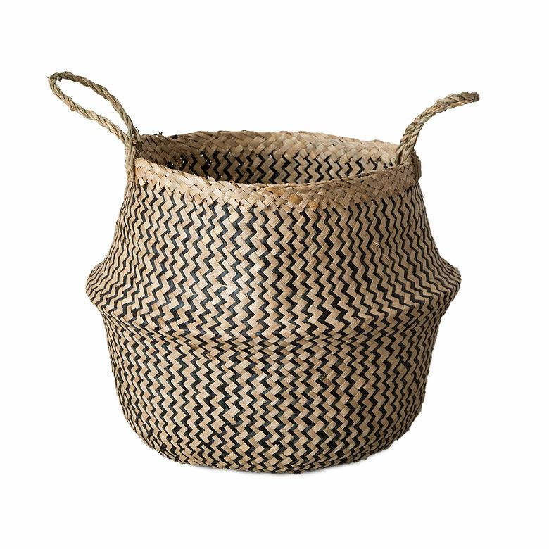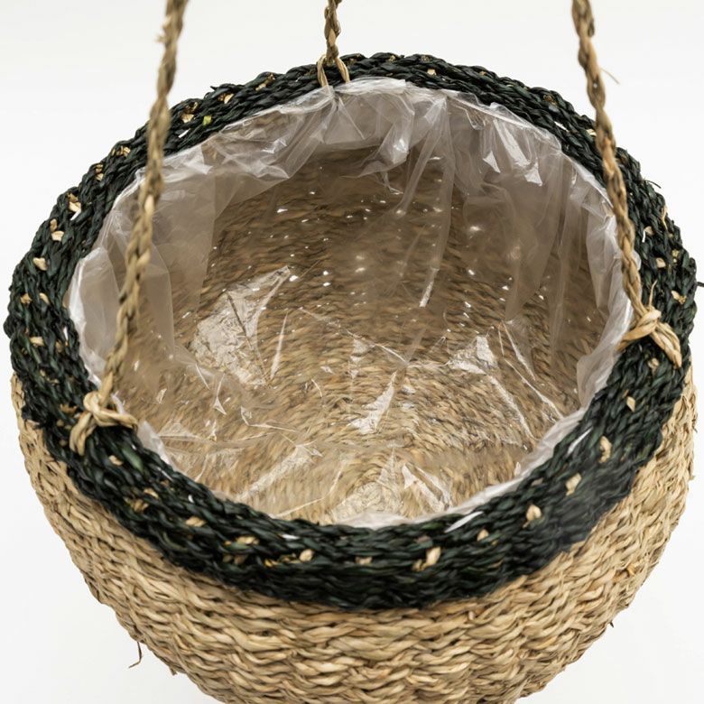 ロープ付きでそのまま吊り下げられる天然素材のバスケットです