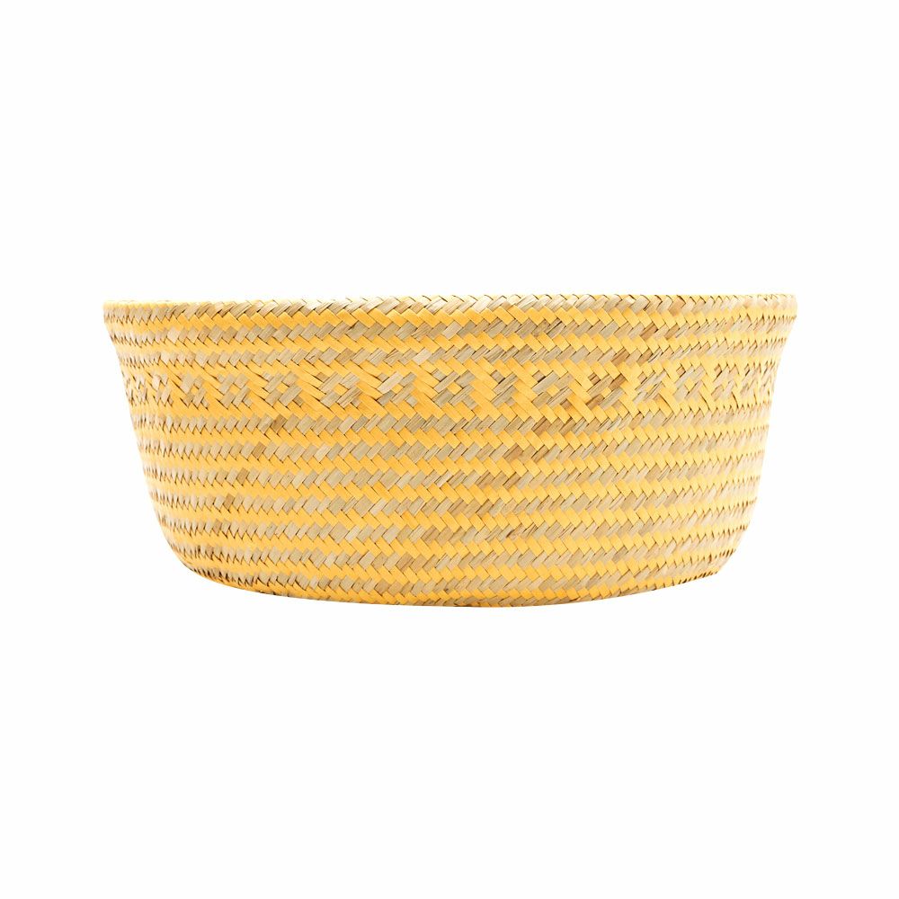 シーグラス製持ち手付き丸型バスケット(マルチボーダ―/イエロー)