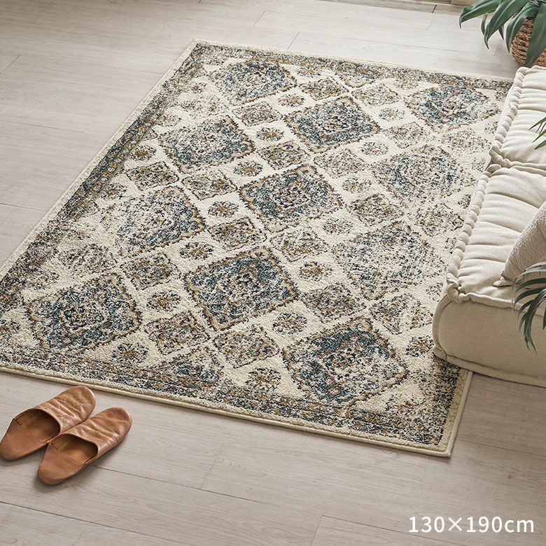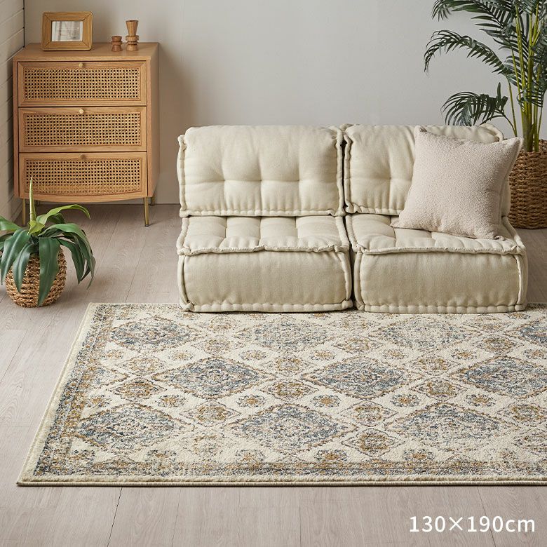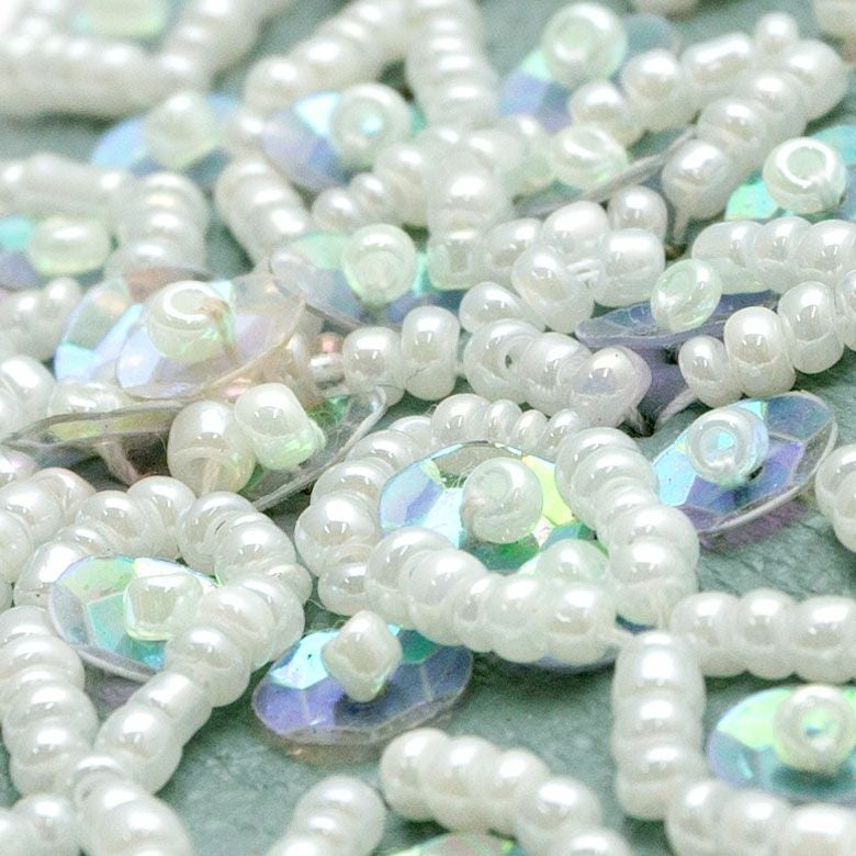 ビーズソカシダイヤ柄 白×ベージュ (M)
