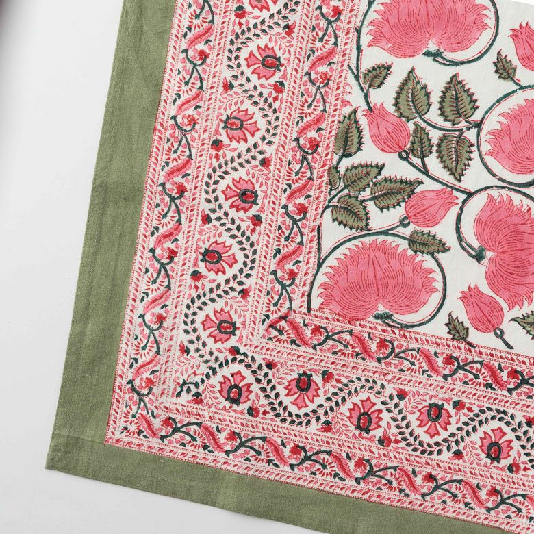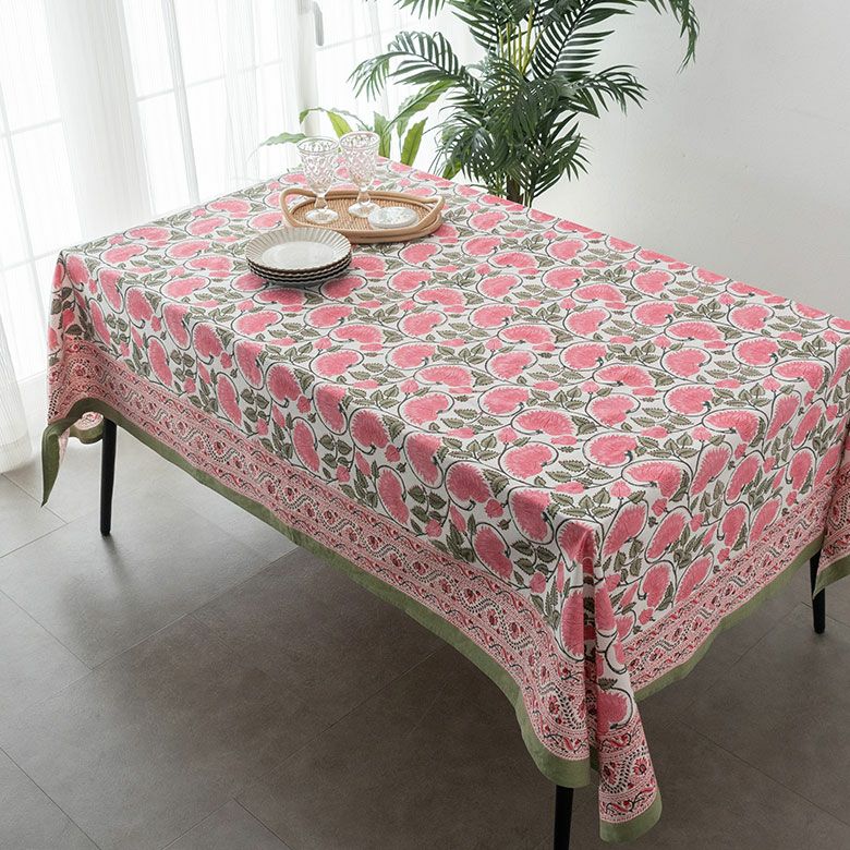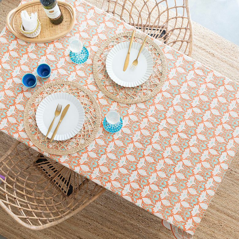 インドブロックプリントのテーブルクロス Oriental Apricot