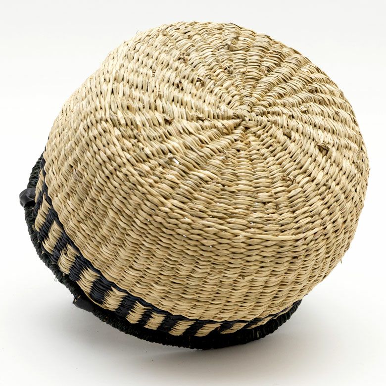 シーグラス製持ち手付き丸型バスケット(マルチボーダ―/ブラック)