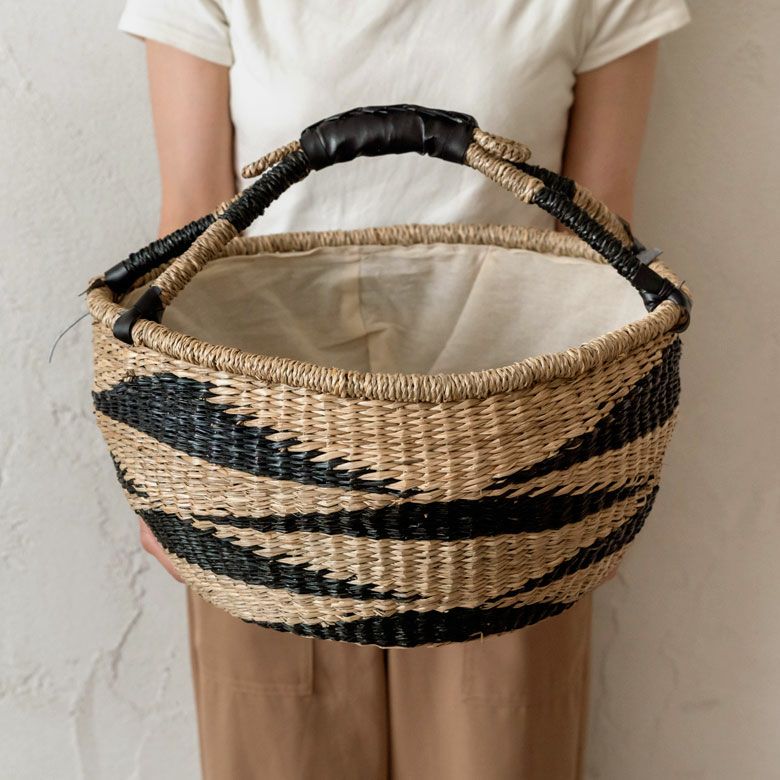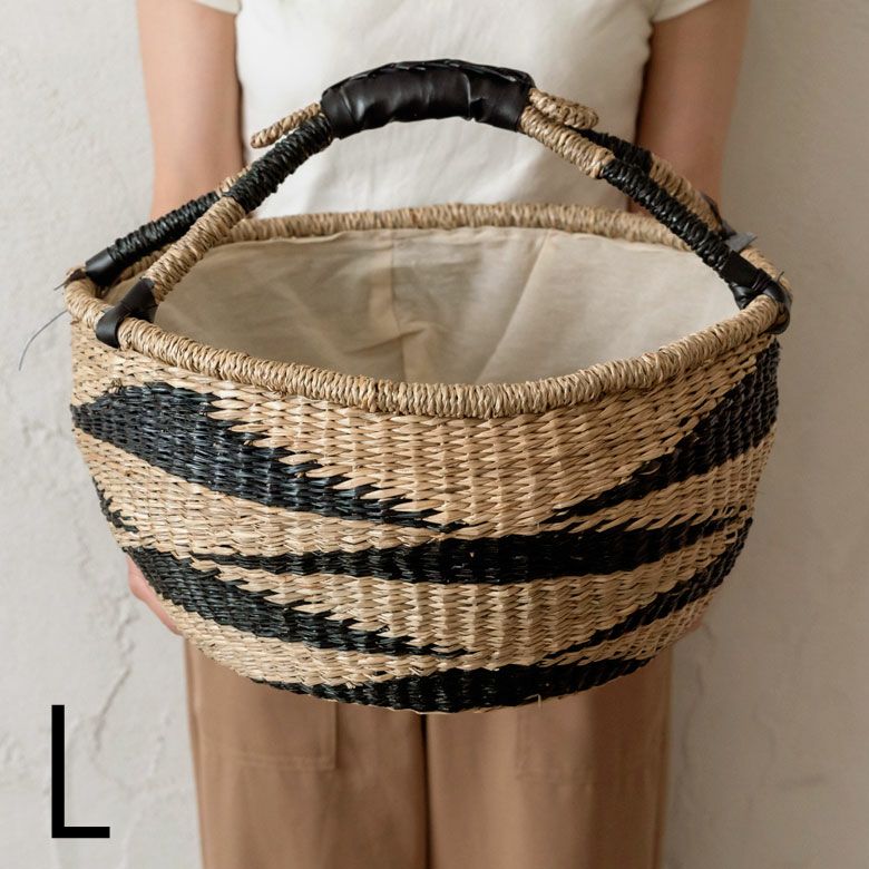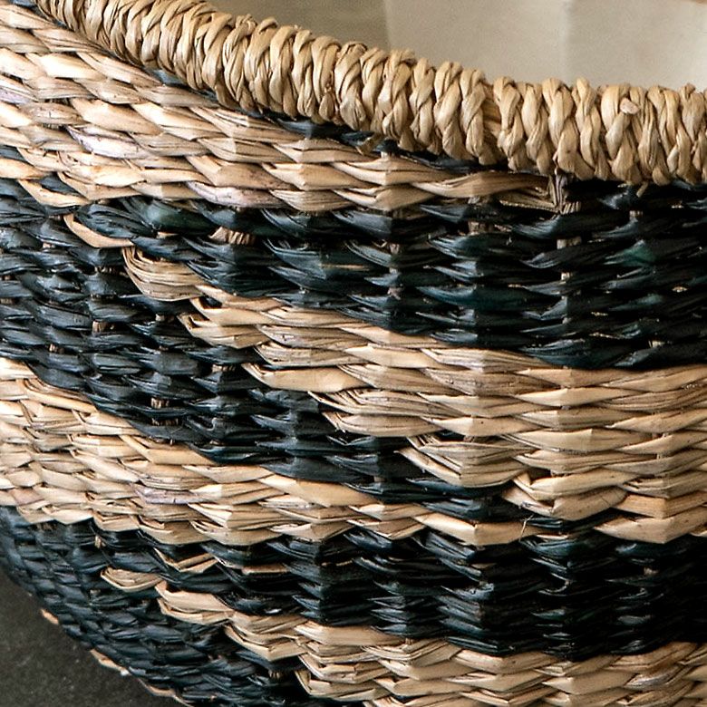 シーグラス製ラウンドかごバスケット ストライプLサイズ