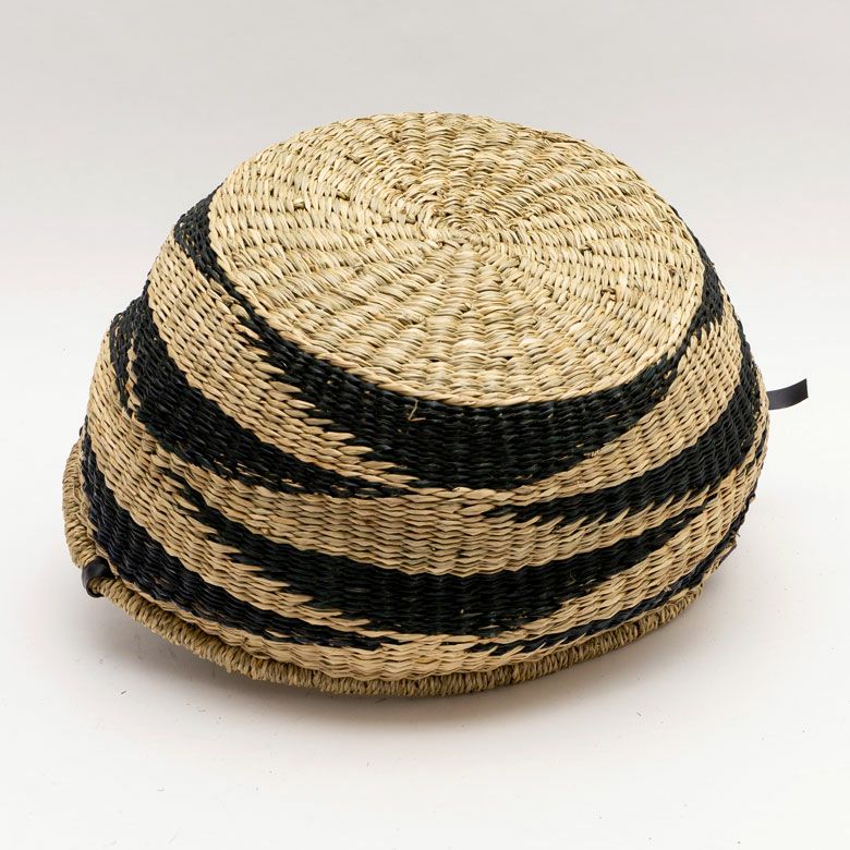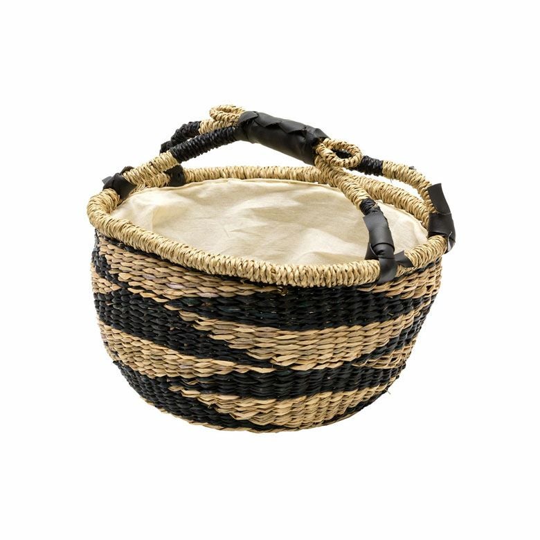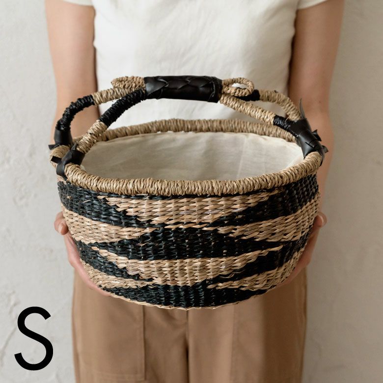 シーグラス製ラウンドかごバスケット ストライプSサイズ