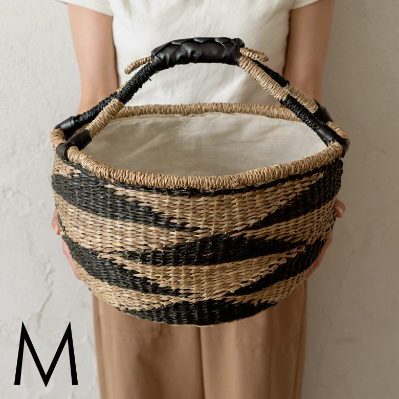 シーグラス製ラウンドかごバスケット ストライプMサイズ
