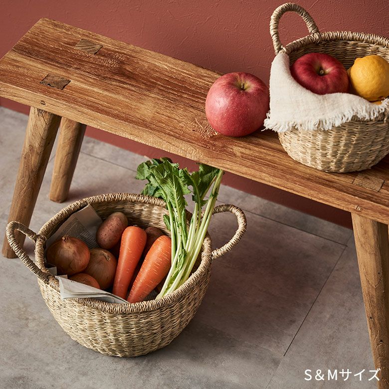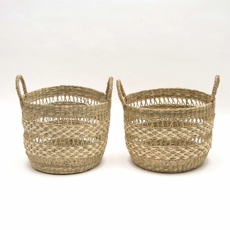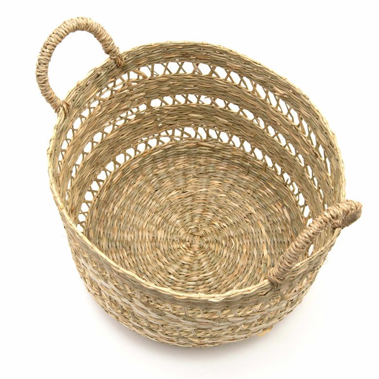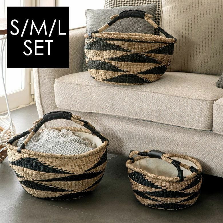シーグラスかごバスケット・両手ハンドル S・M・Lセット ナチュラル
