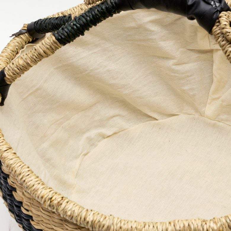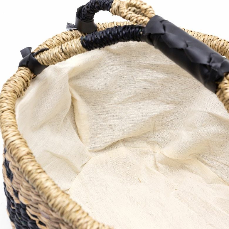 シーグラス製持ち手付き丸型バスケット(チェック柄)