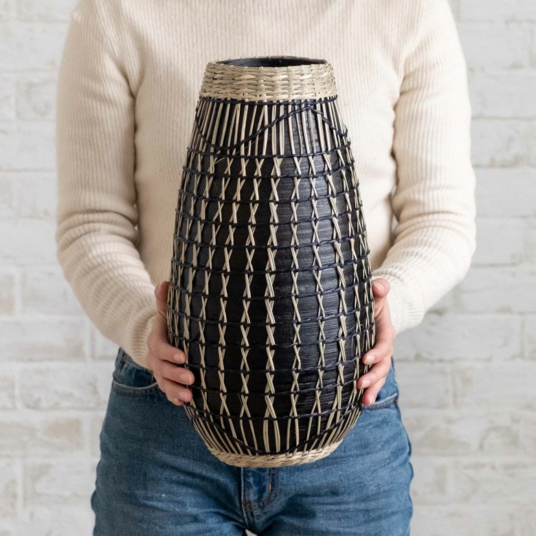 シーグラスとバンブーのフラワーベース Lサイズ