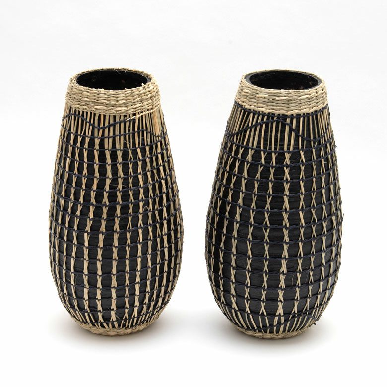 シーグラスで編まれたプランターカバーSML3個セット