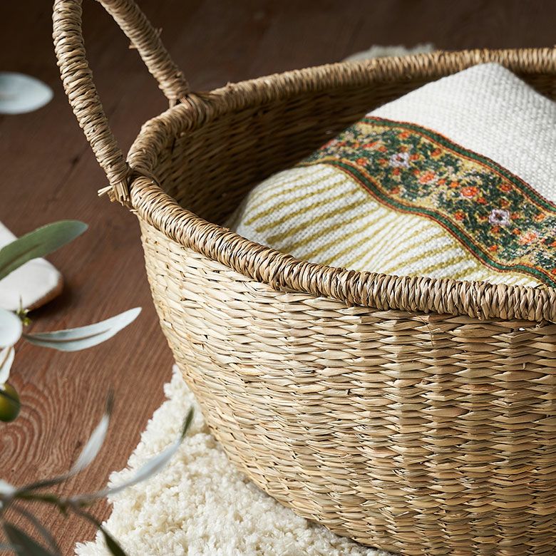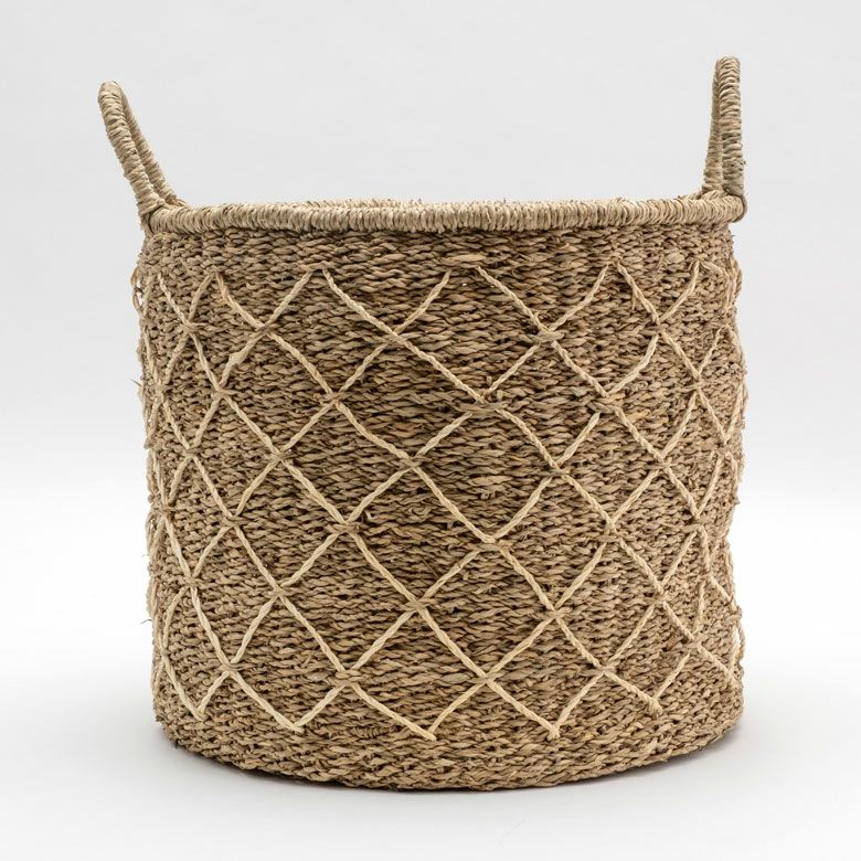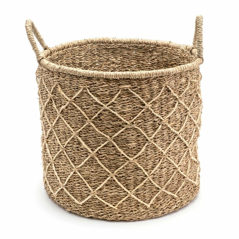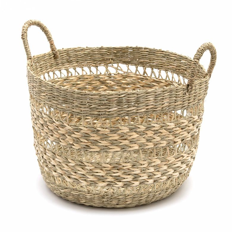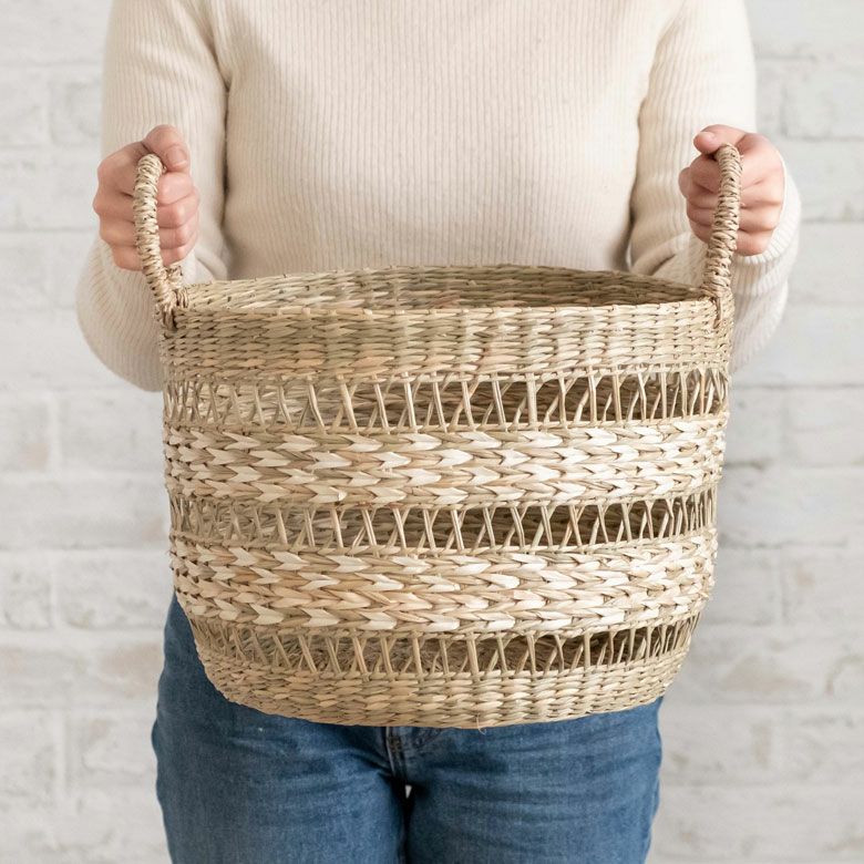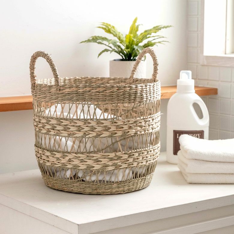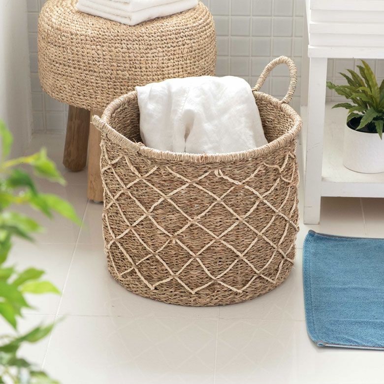 シーグラスで編まれた大きなランドリーバスケット